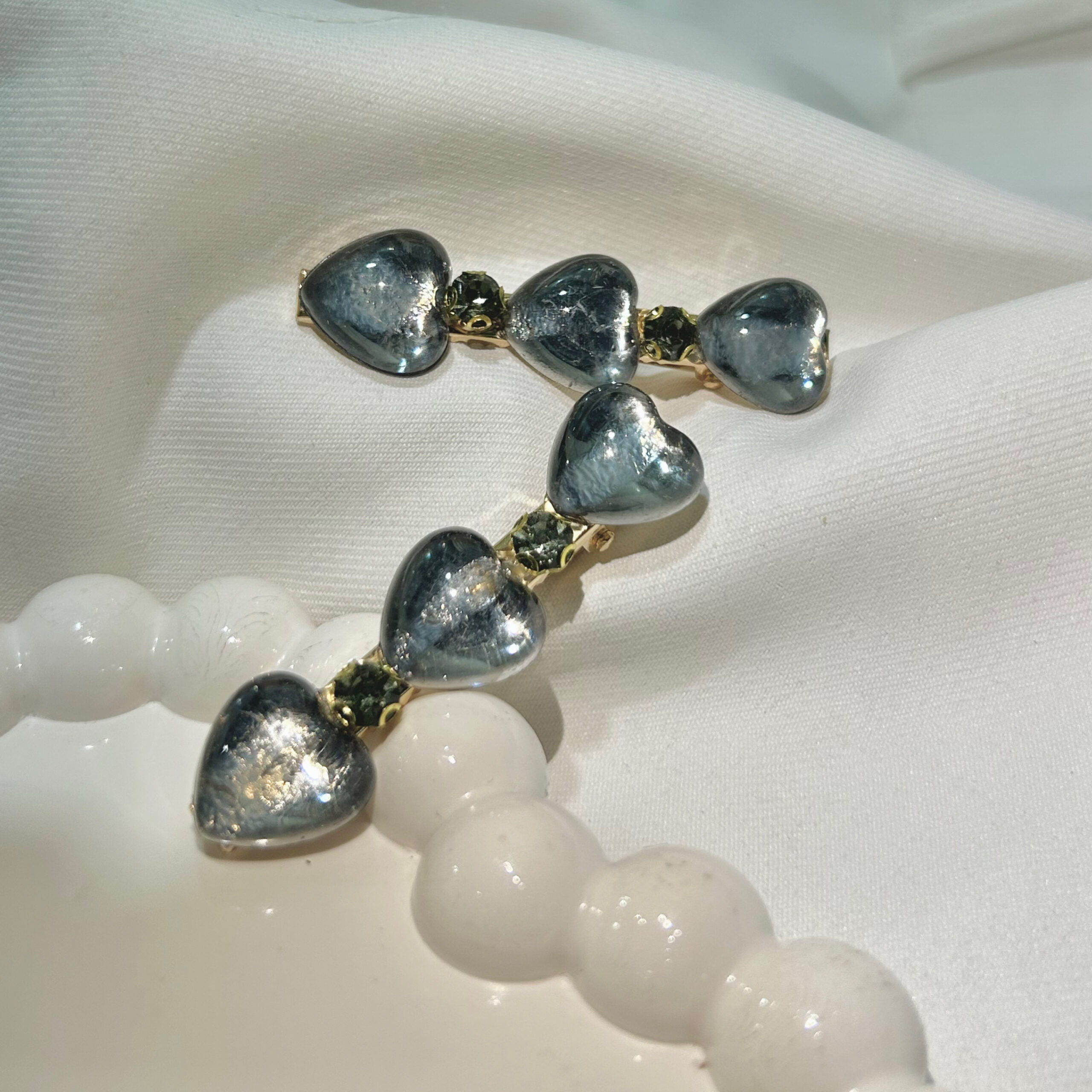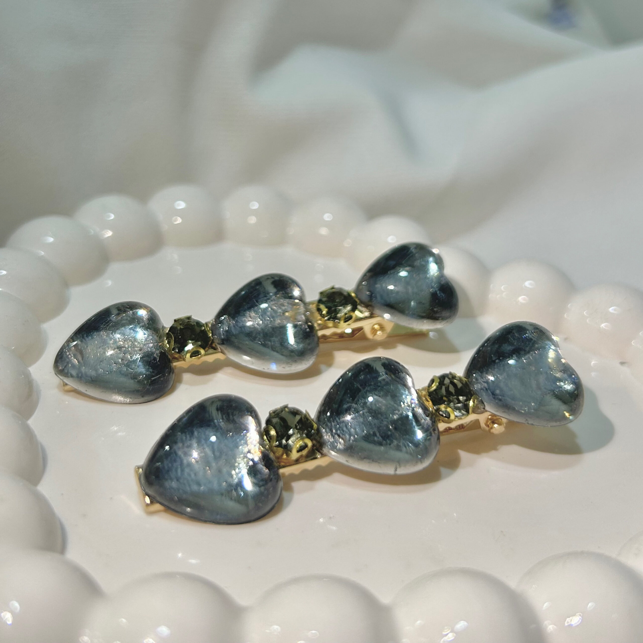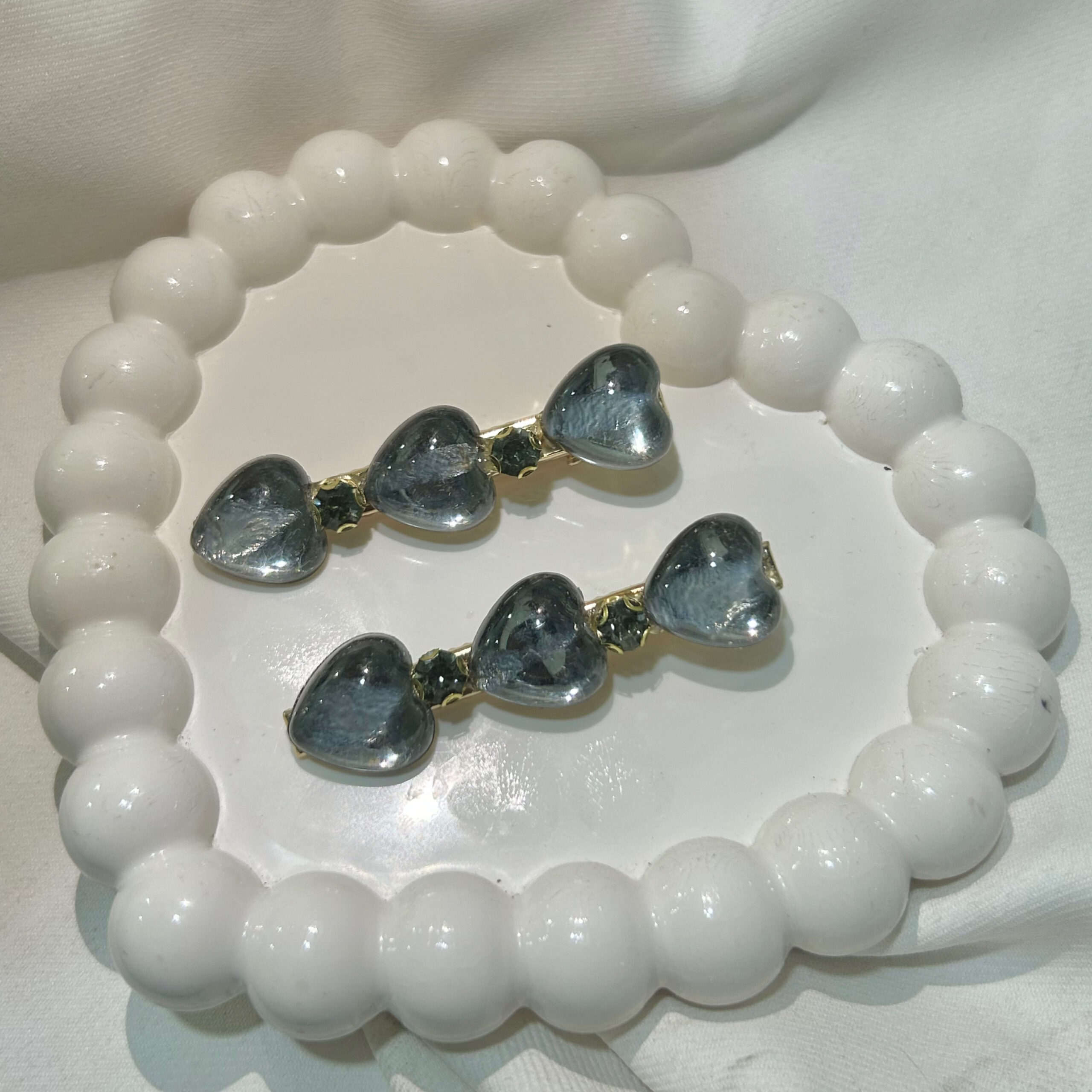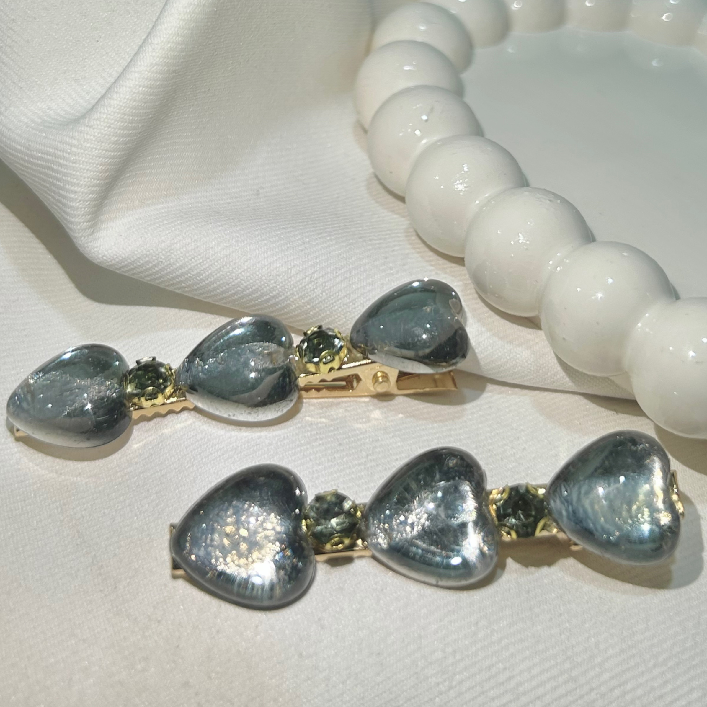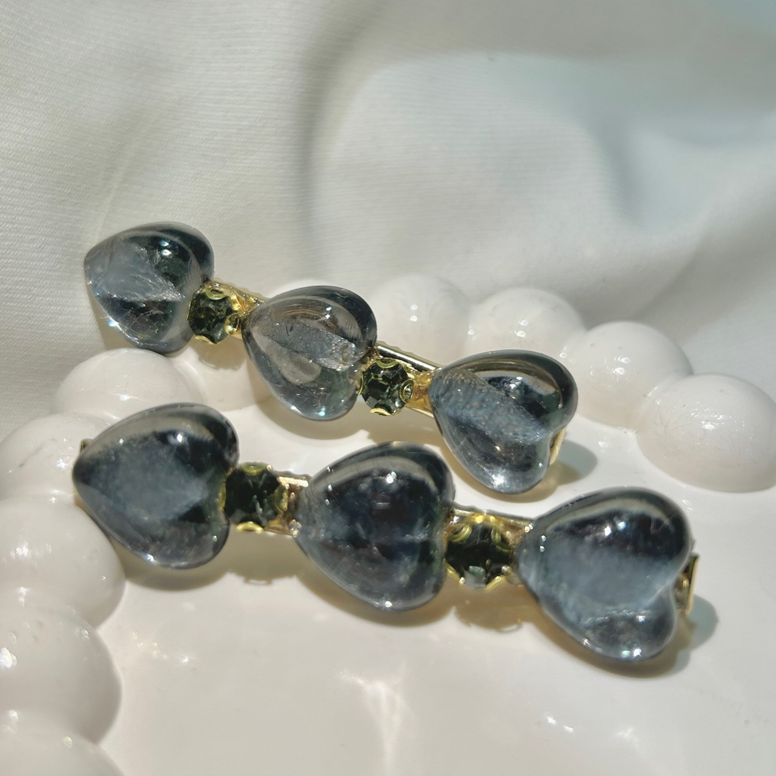 Black Grey Heart Hair Clips Set , Elegant Korean Style Hair Accessories for Women, Gold-Tone