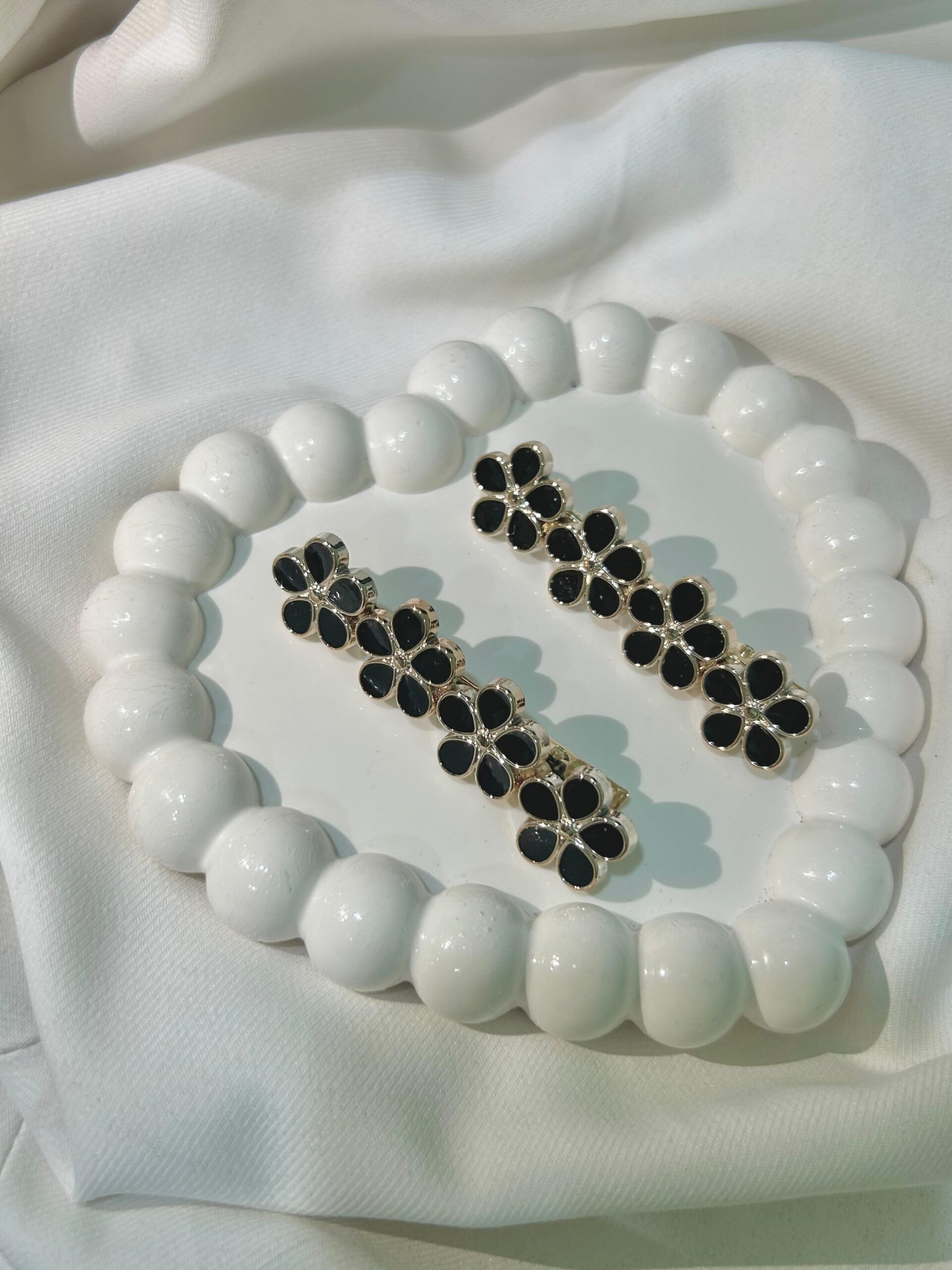 Black Little Folwers Hair Clips Set , Elegant Korean Style Hair Accessories for Women