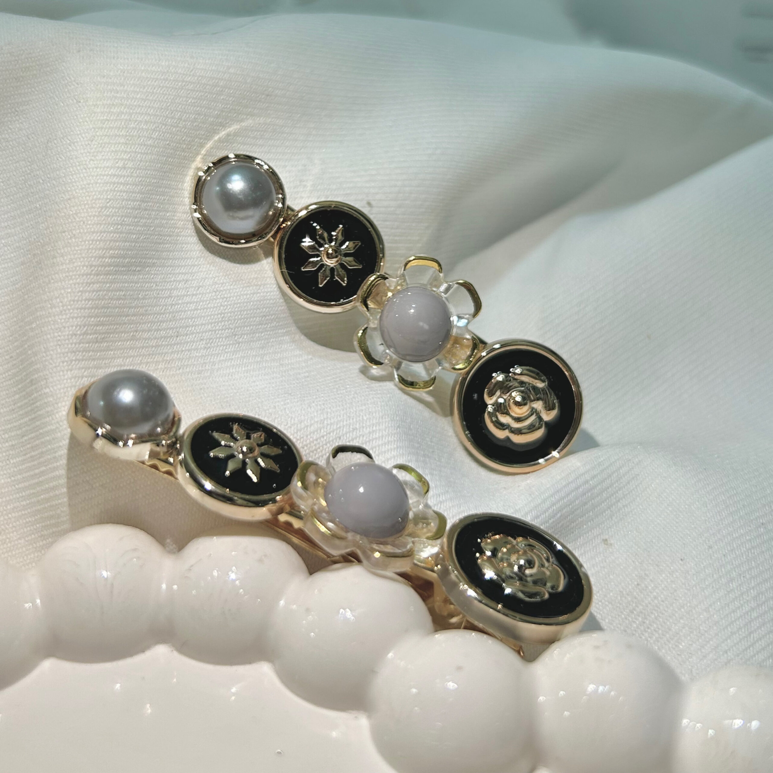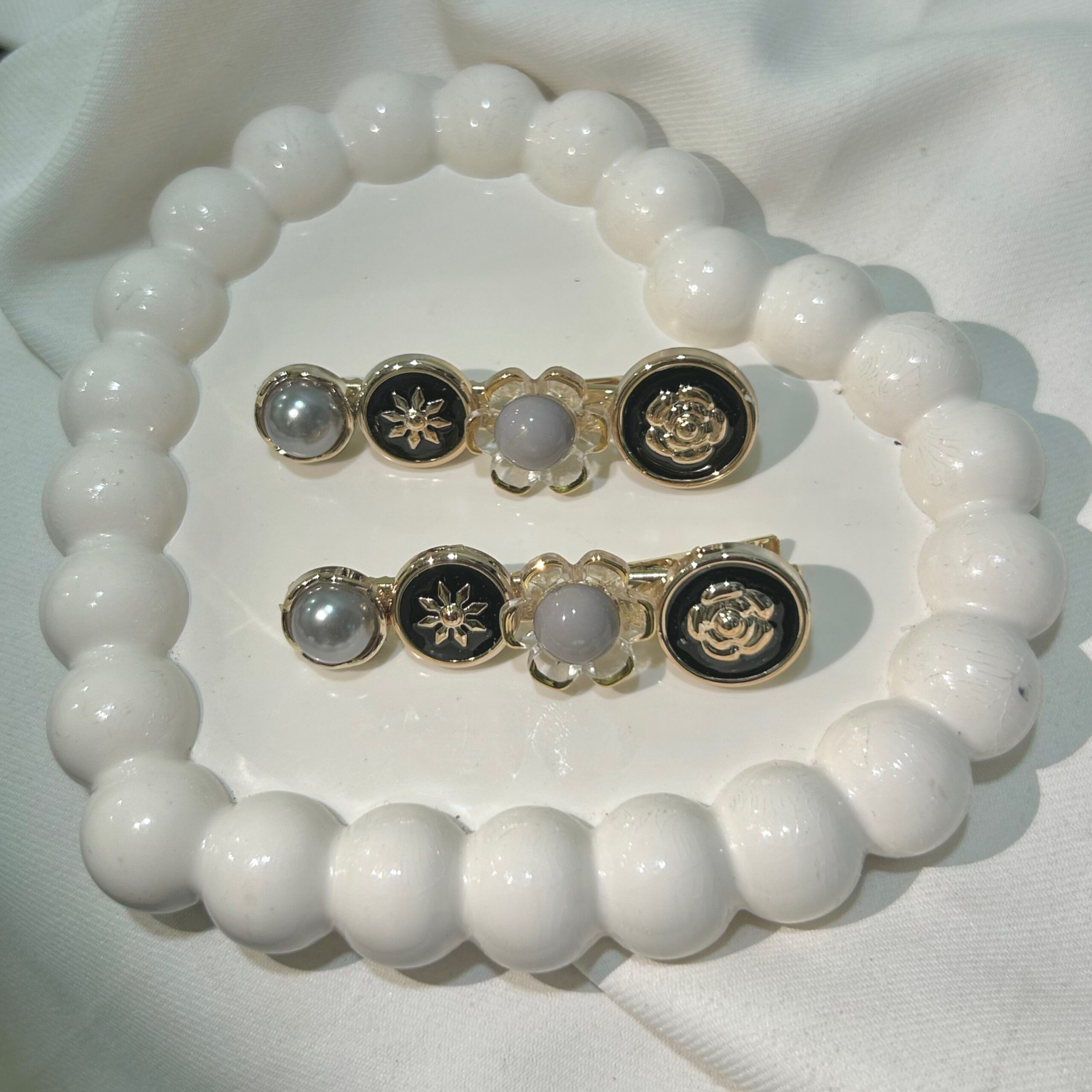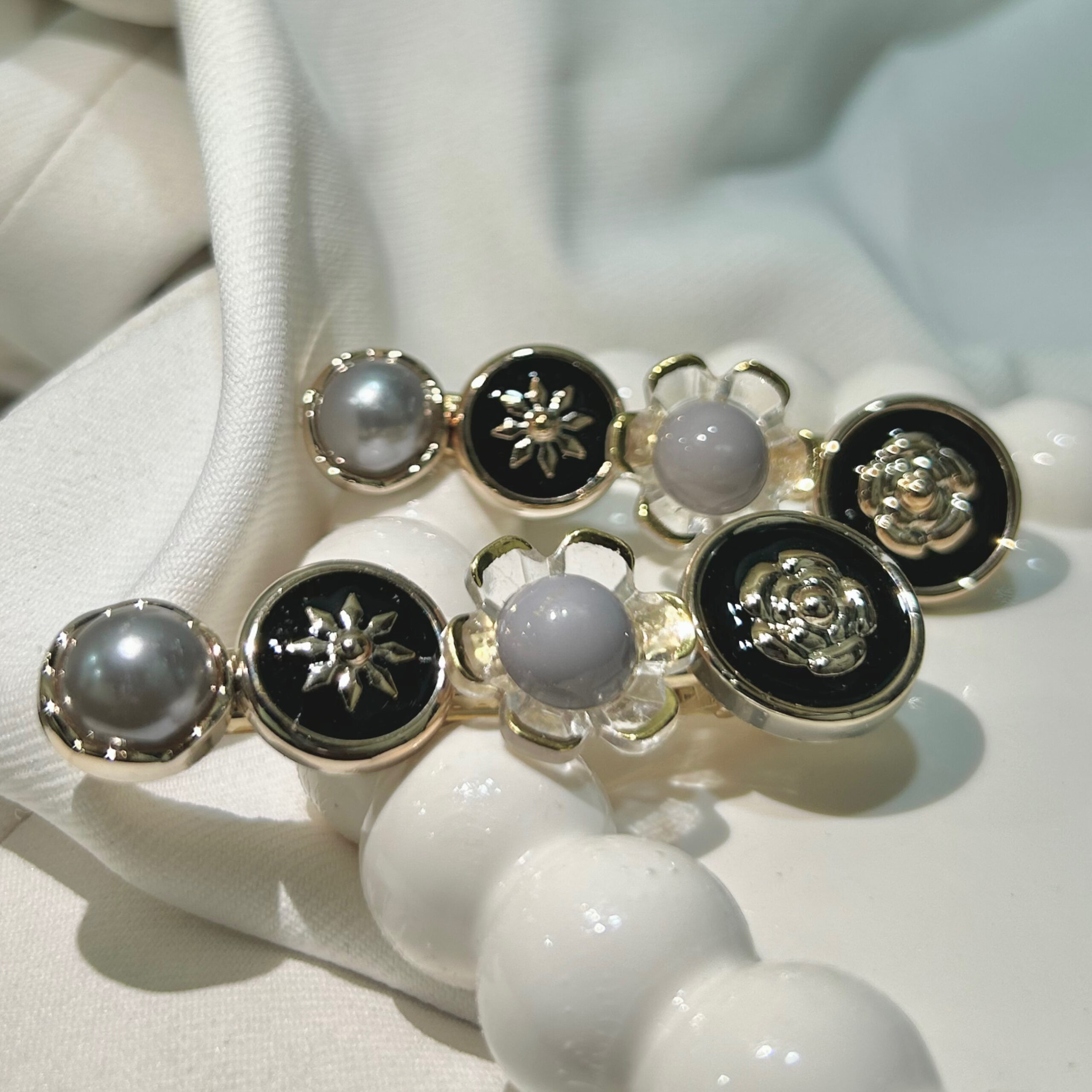 Black Round Flower Hair Clips Set , Elegant Korean Style Hair Accessories for Women