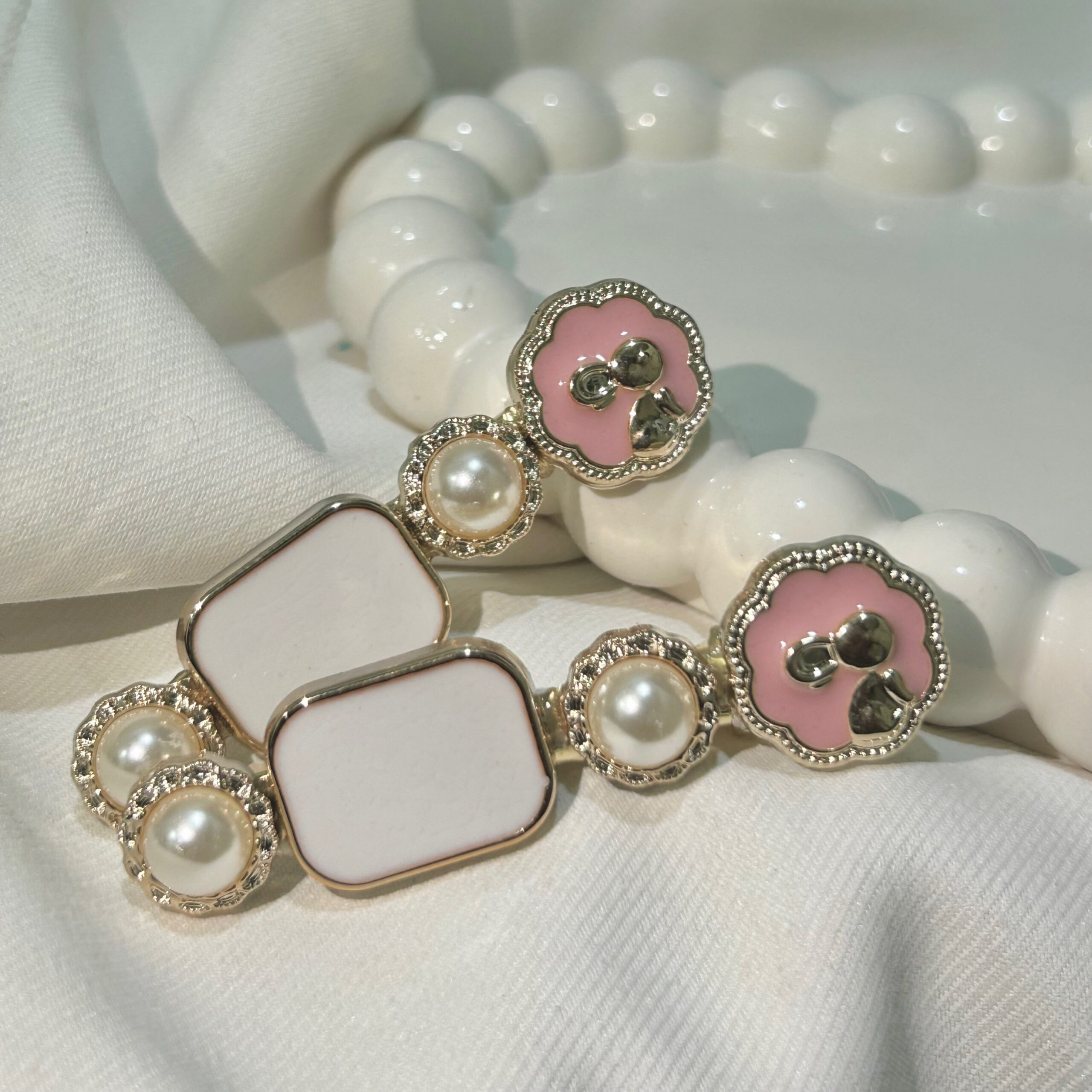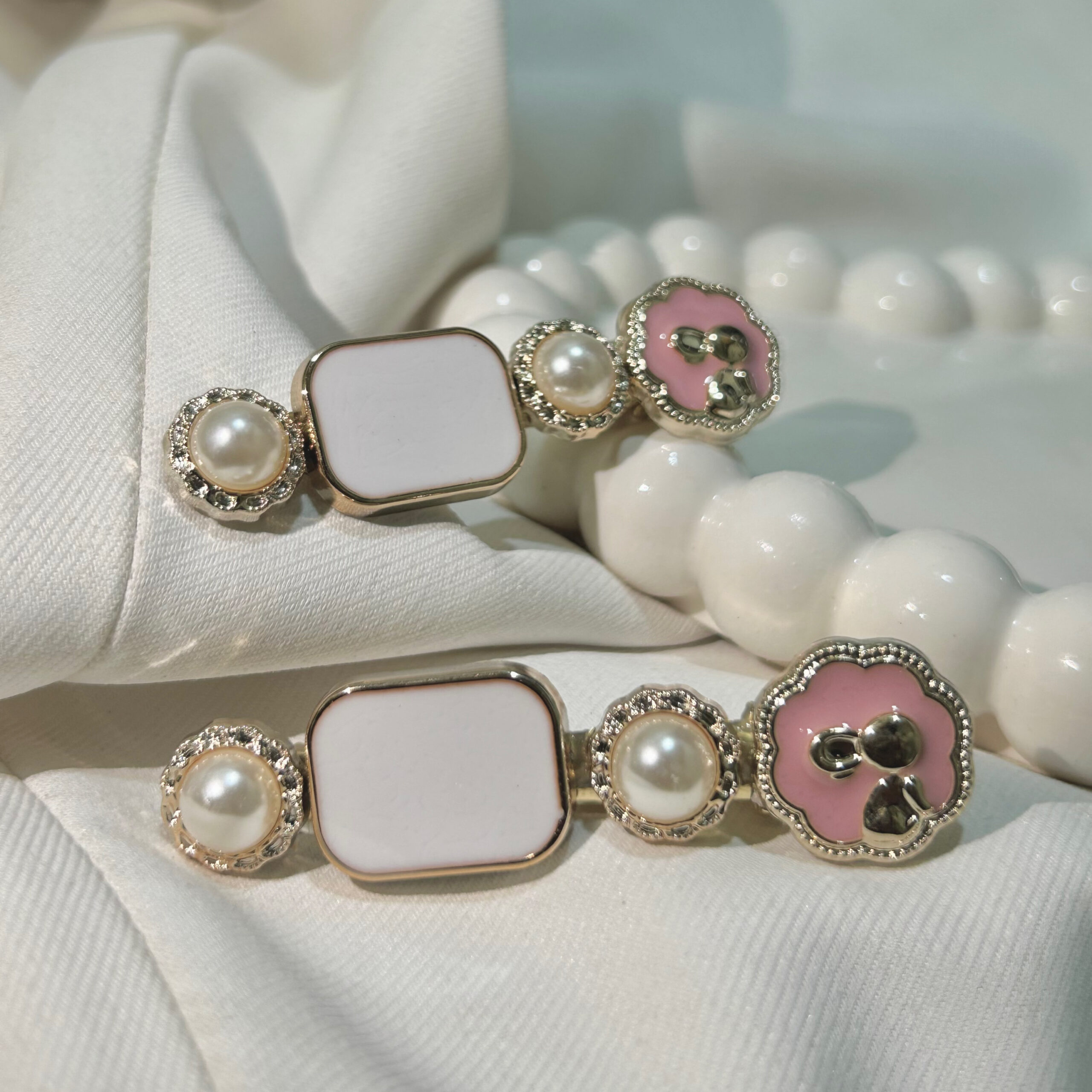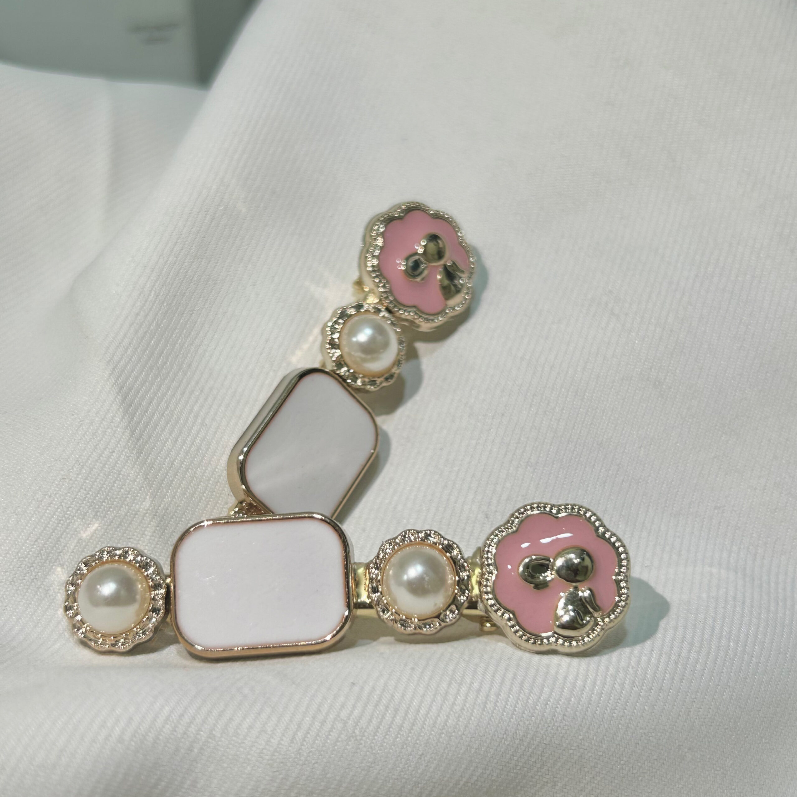 Box white Pearl Hair Clips Set with Pink Flowers, Elegant Korean Style Hair Accessories for Women, Gold-Tone