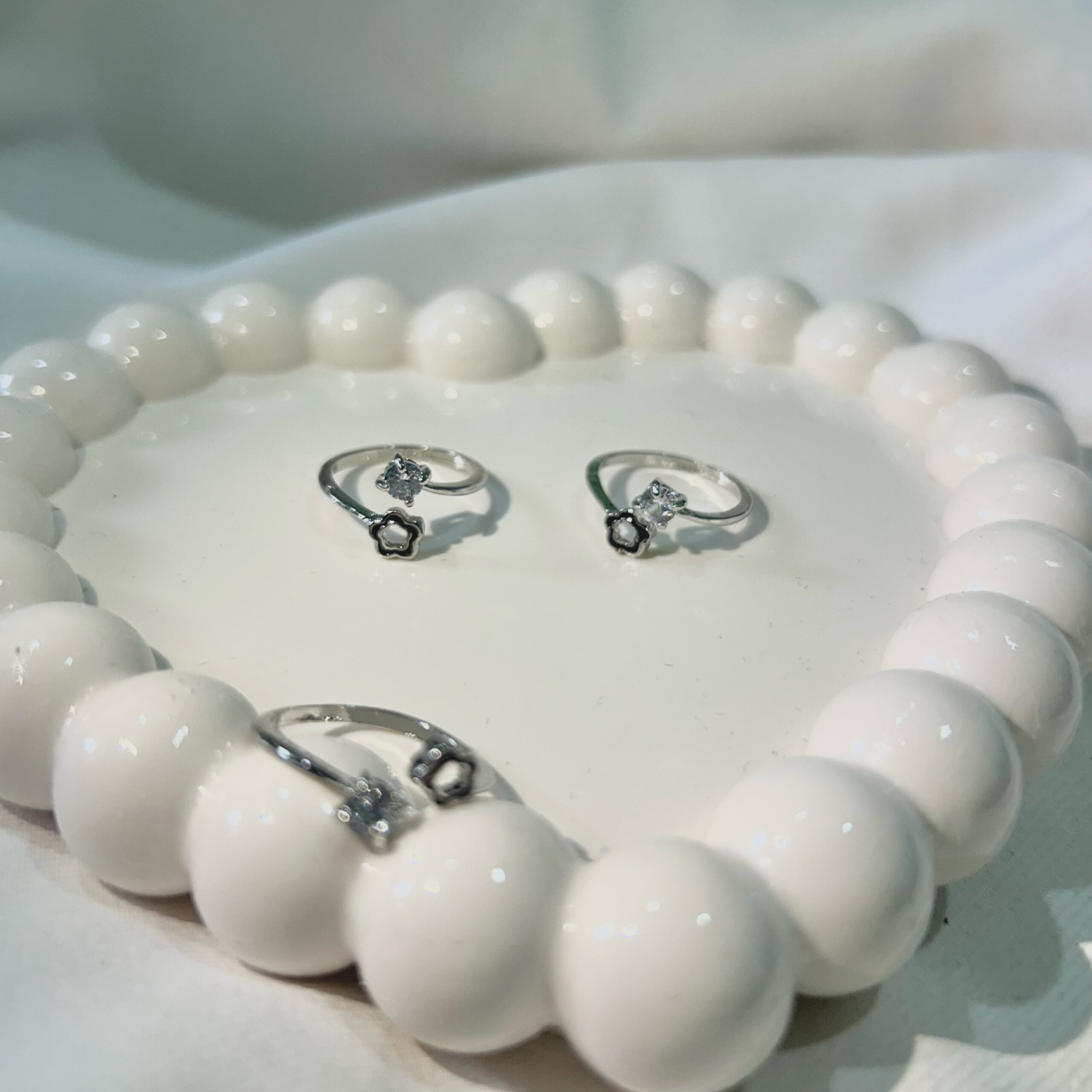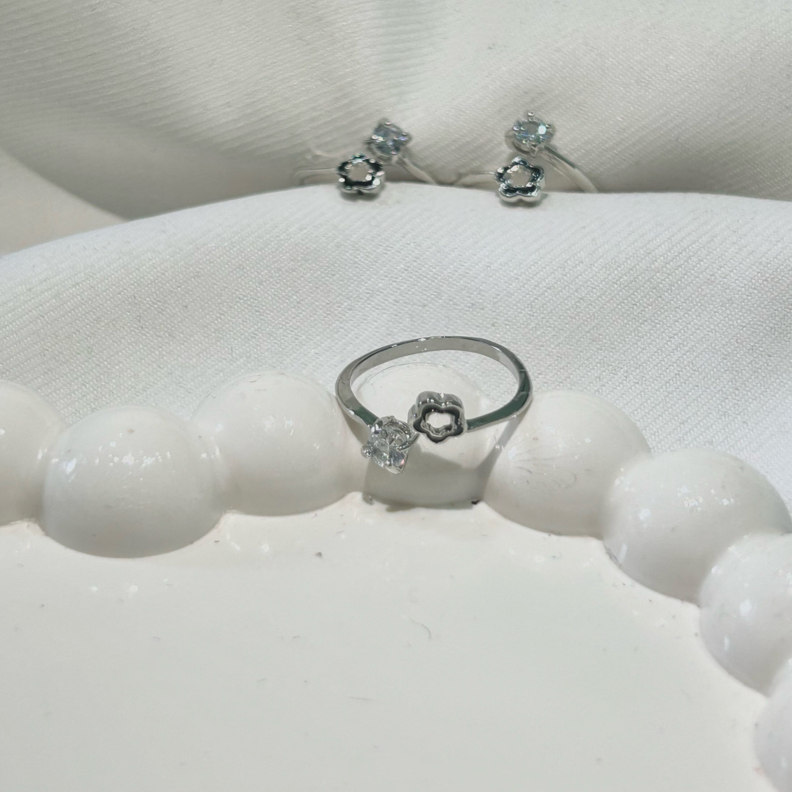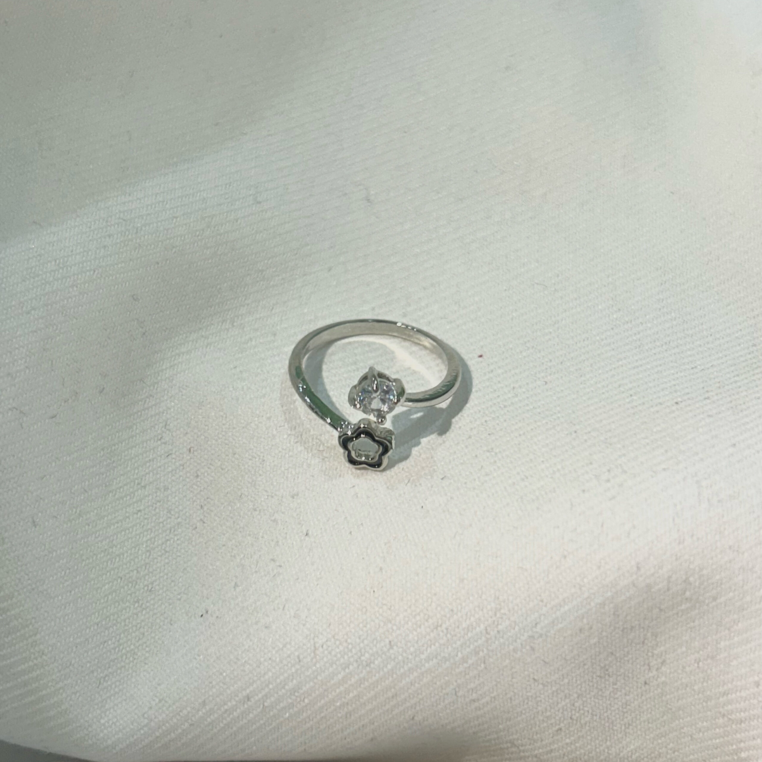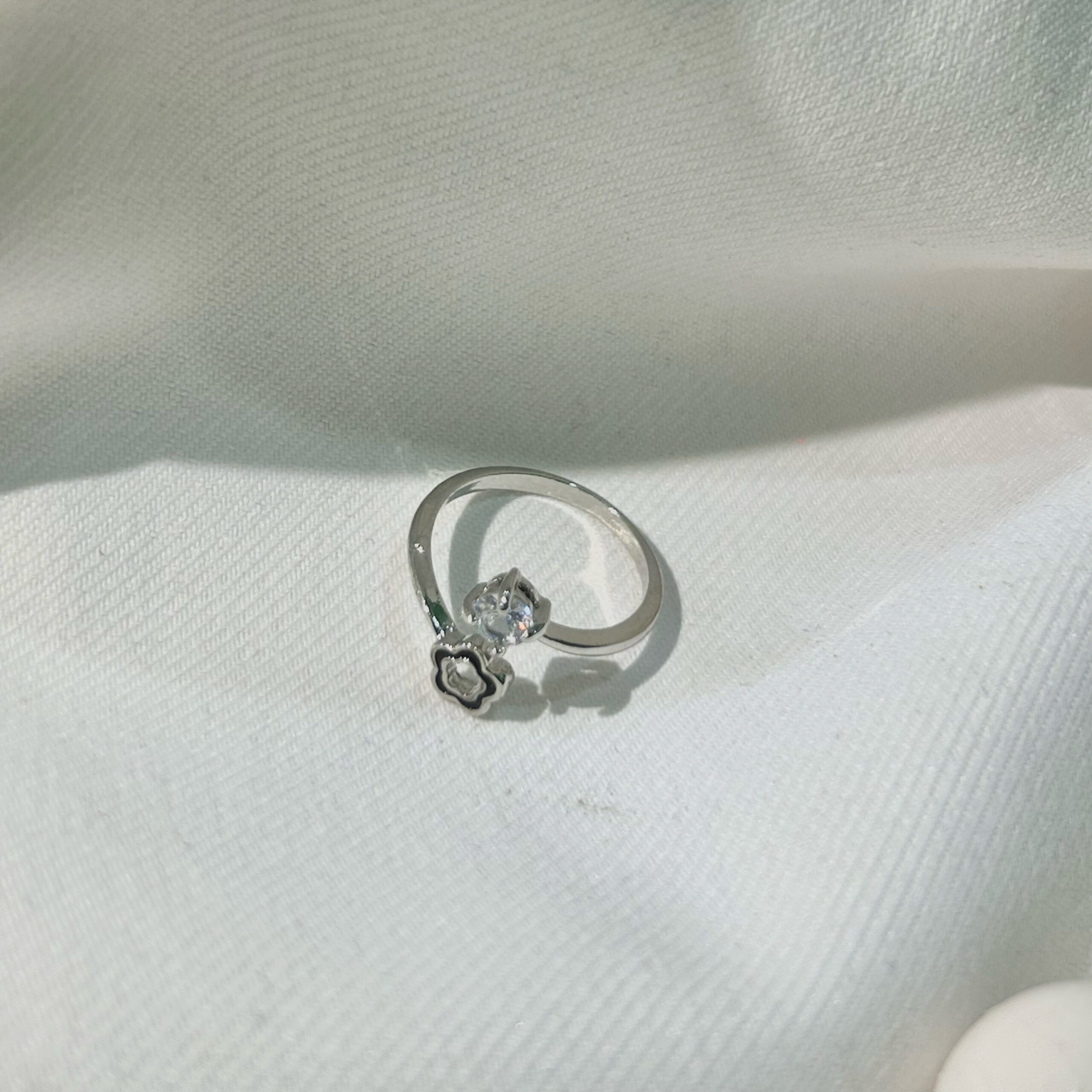 Flower Shap stunning silver-plated floral design and studded shimmering white diamond Adjustable finger ring for women and girls.