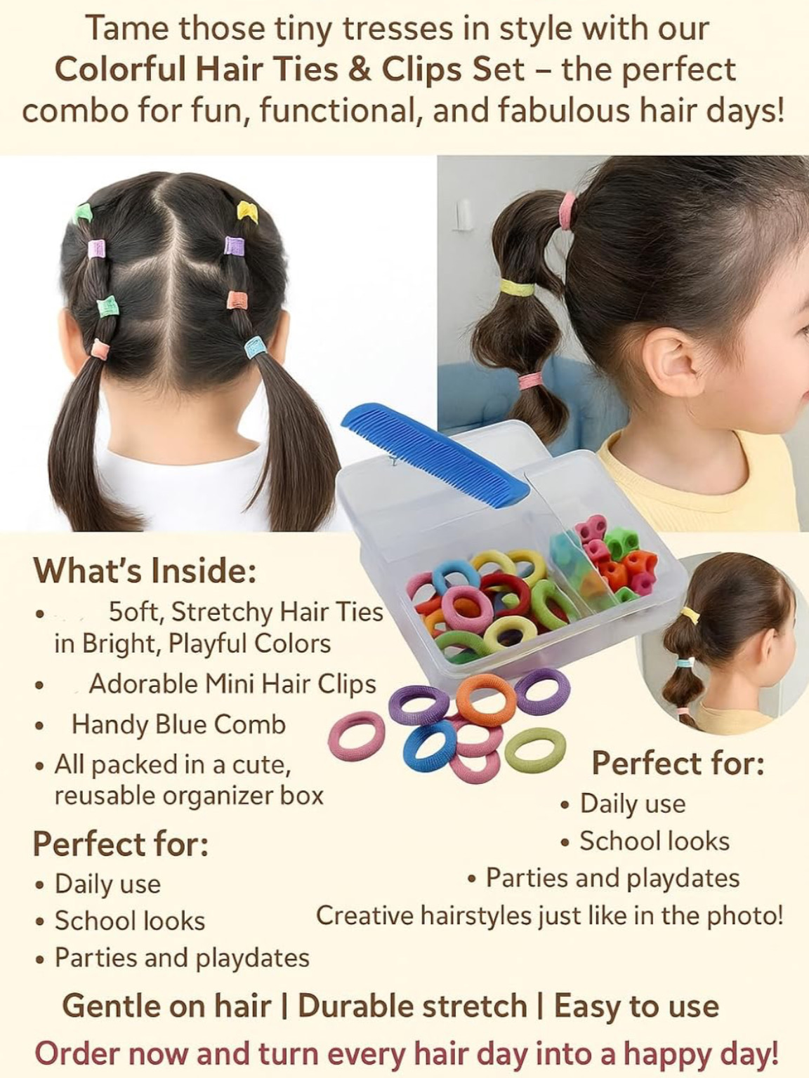 GENTLE HOLD: Soft elastic material provides secure grip while preventing hair damage and minimizing tangles