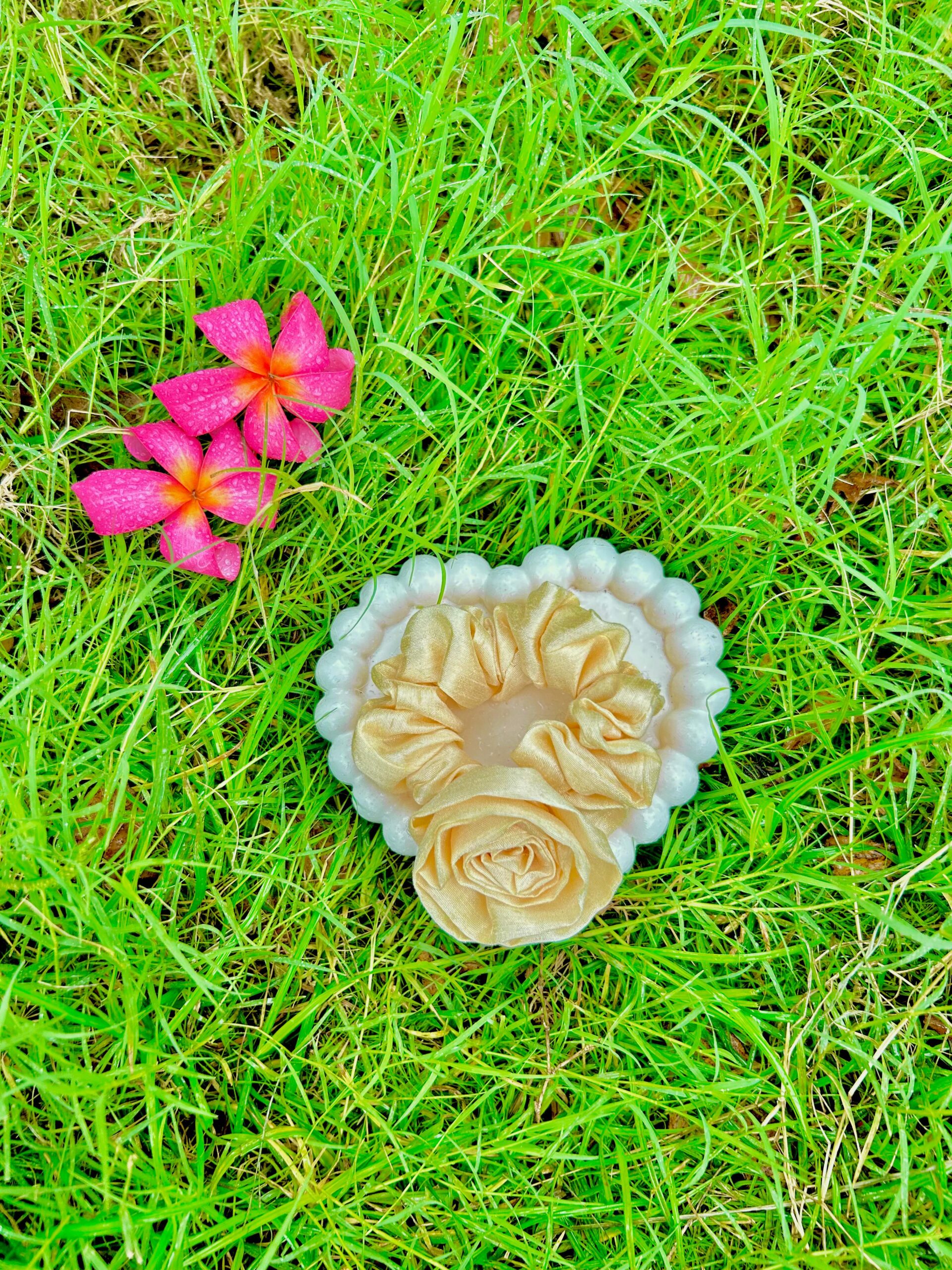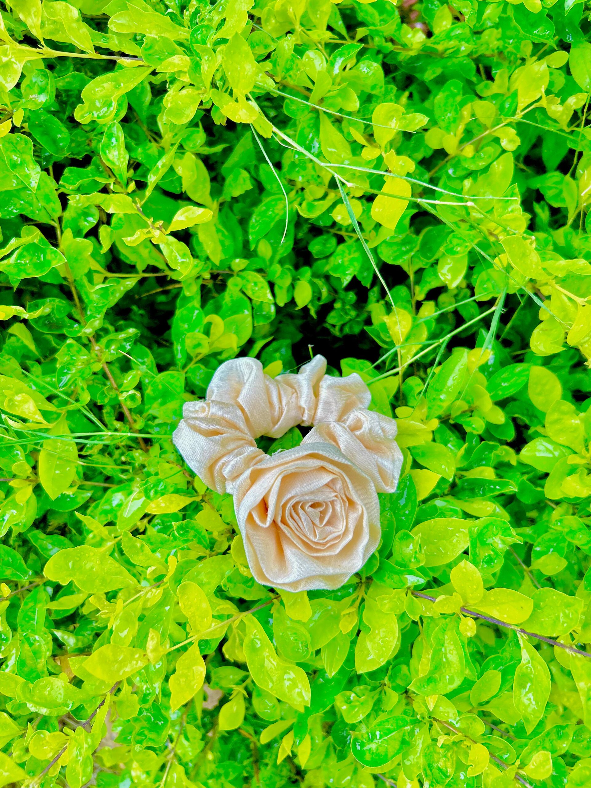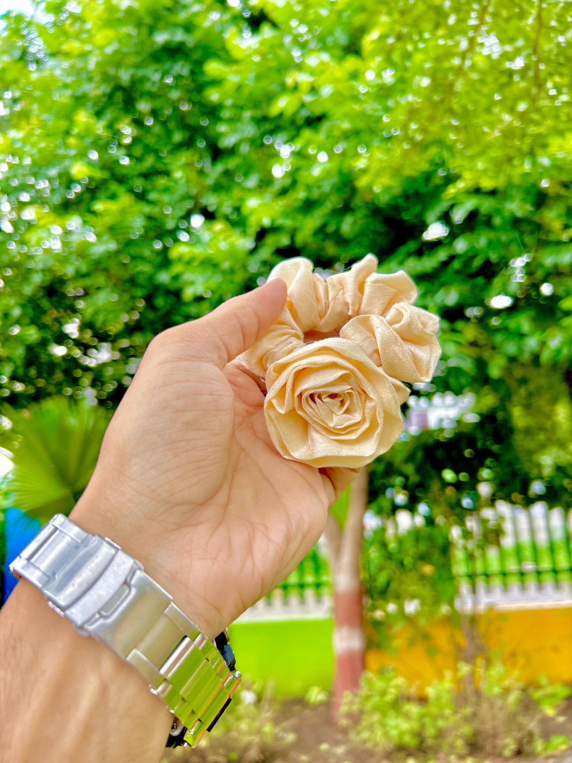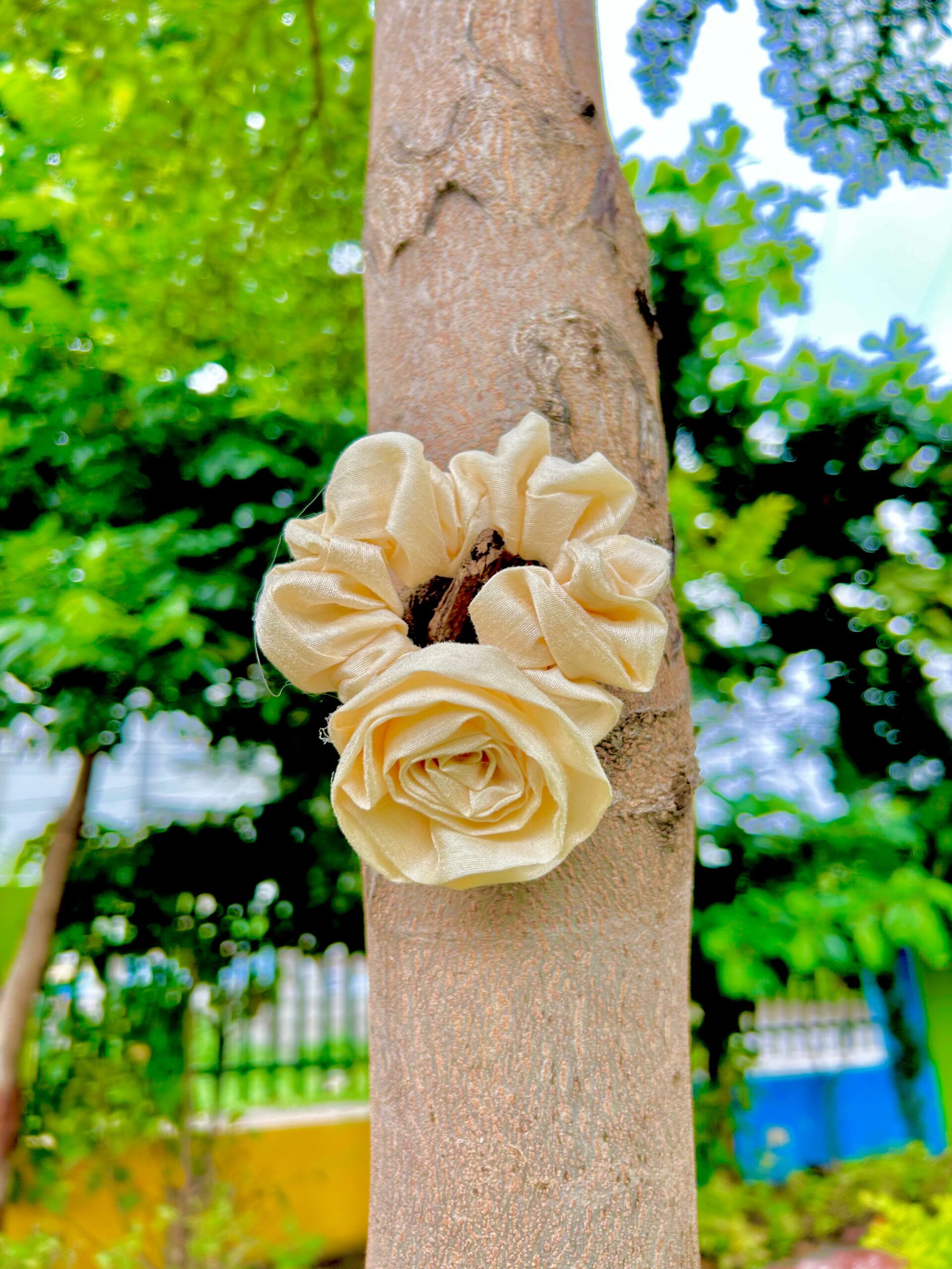 Handmade Cream Colour Flower Scrunchie, Hair Ties, Rubber Band For Womens And Girls