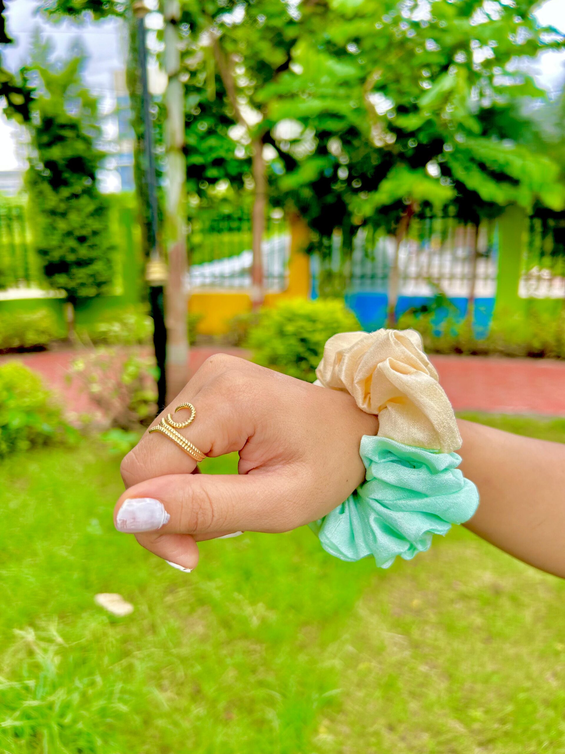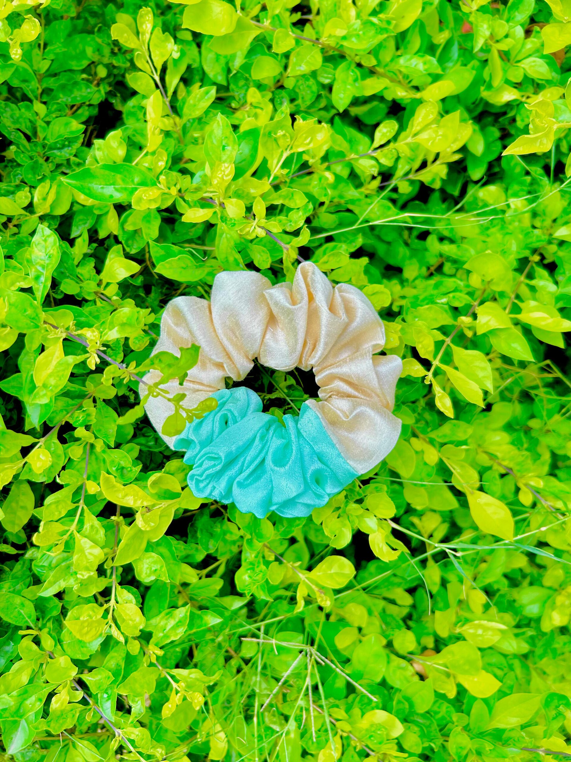 Handmade Cream & Green Mix Colour Scrunchie, Hair Ties, Rubber Band For Womens And Girls