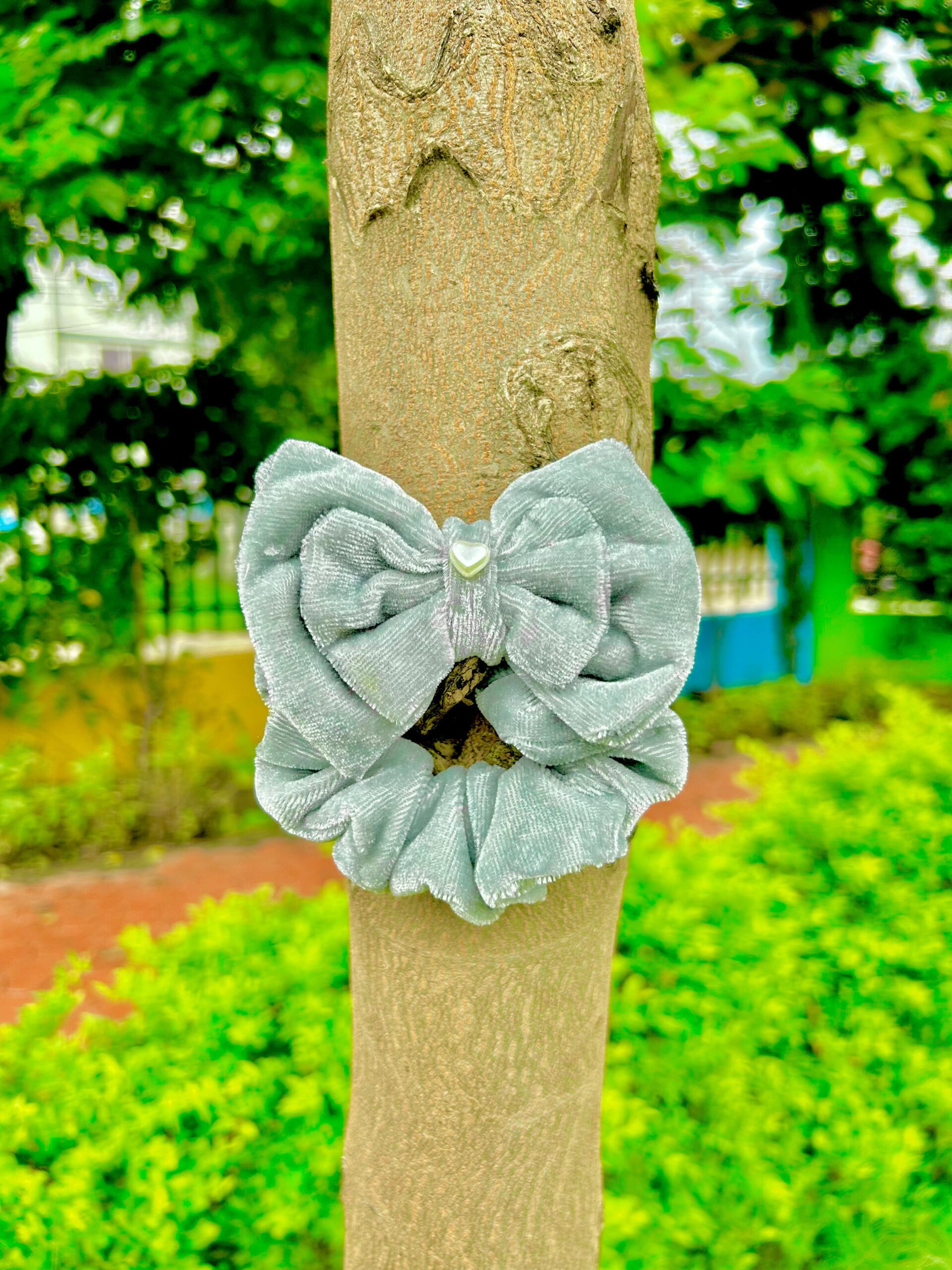 Handmade Grey Velmet Bow Style Scrunchie, Hair Ties, Rubber Band For Womens And Girls