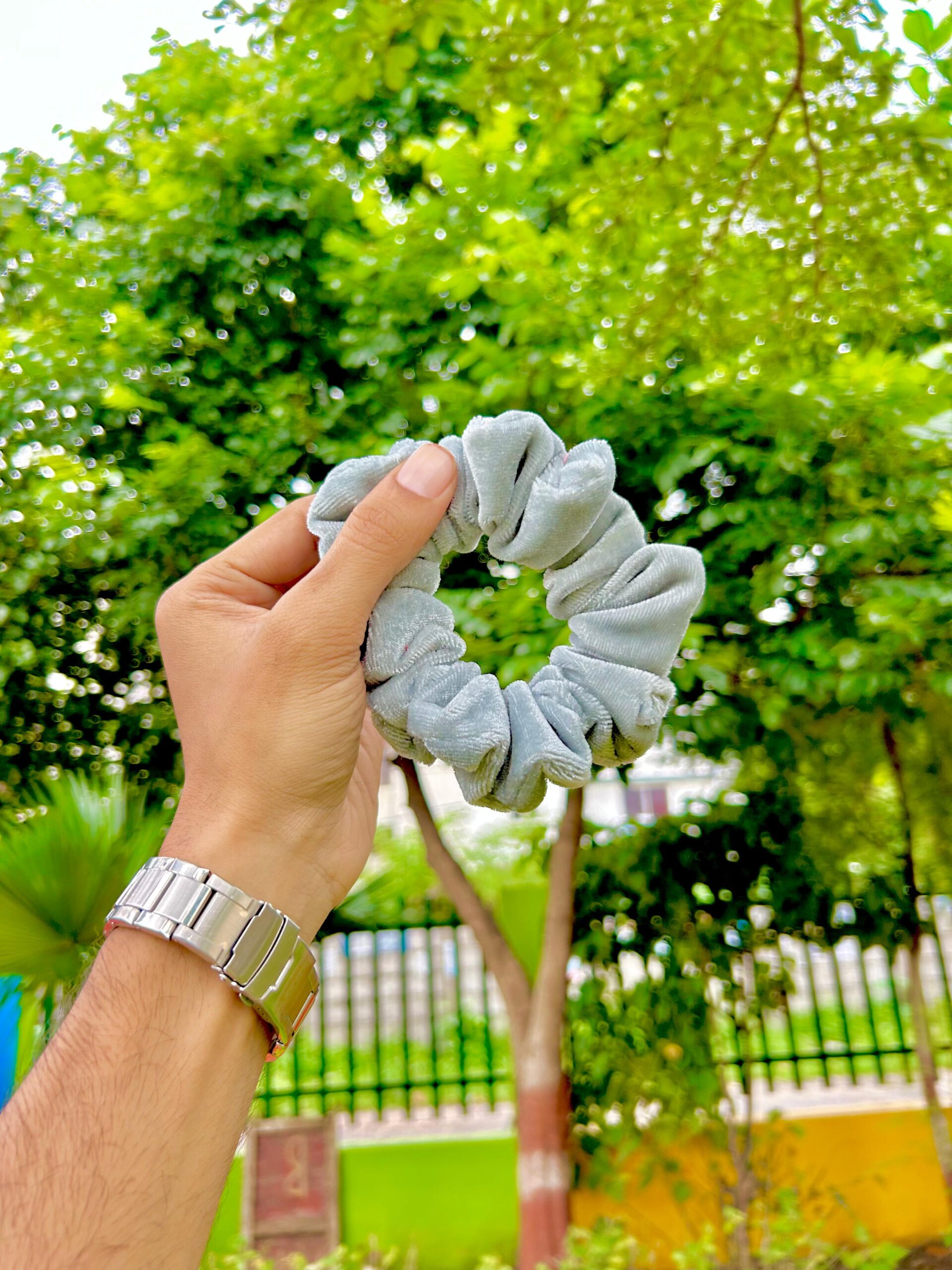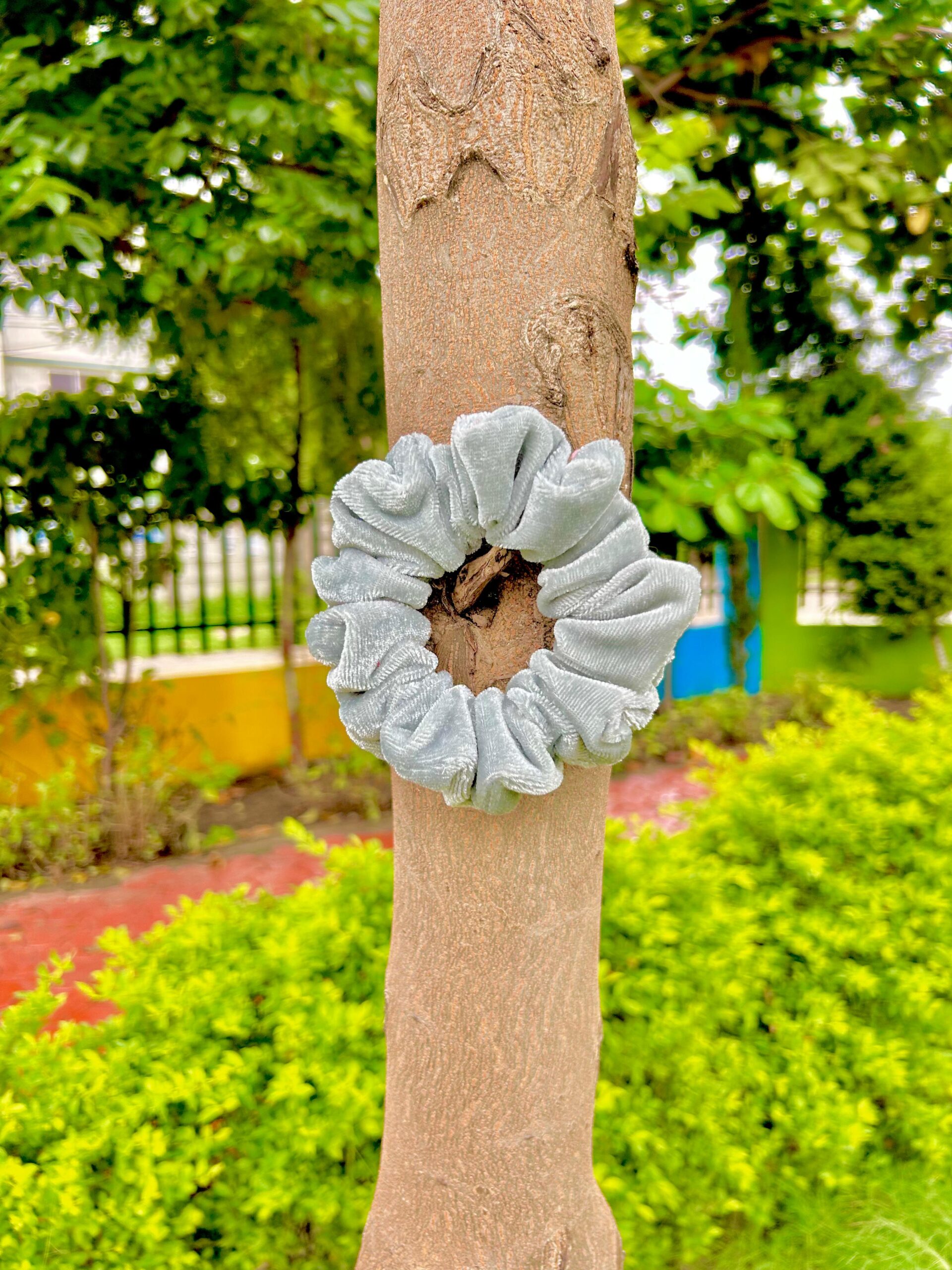 Handmade Grey Velmet Fabric Hair Scrunchies , Hair Ties, Rubber Band For Womens And Girls