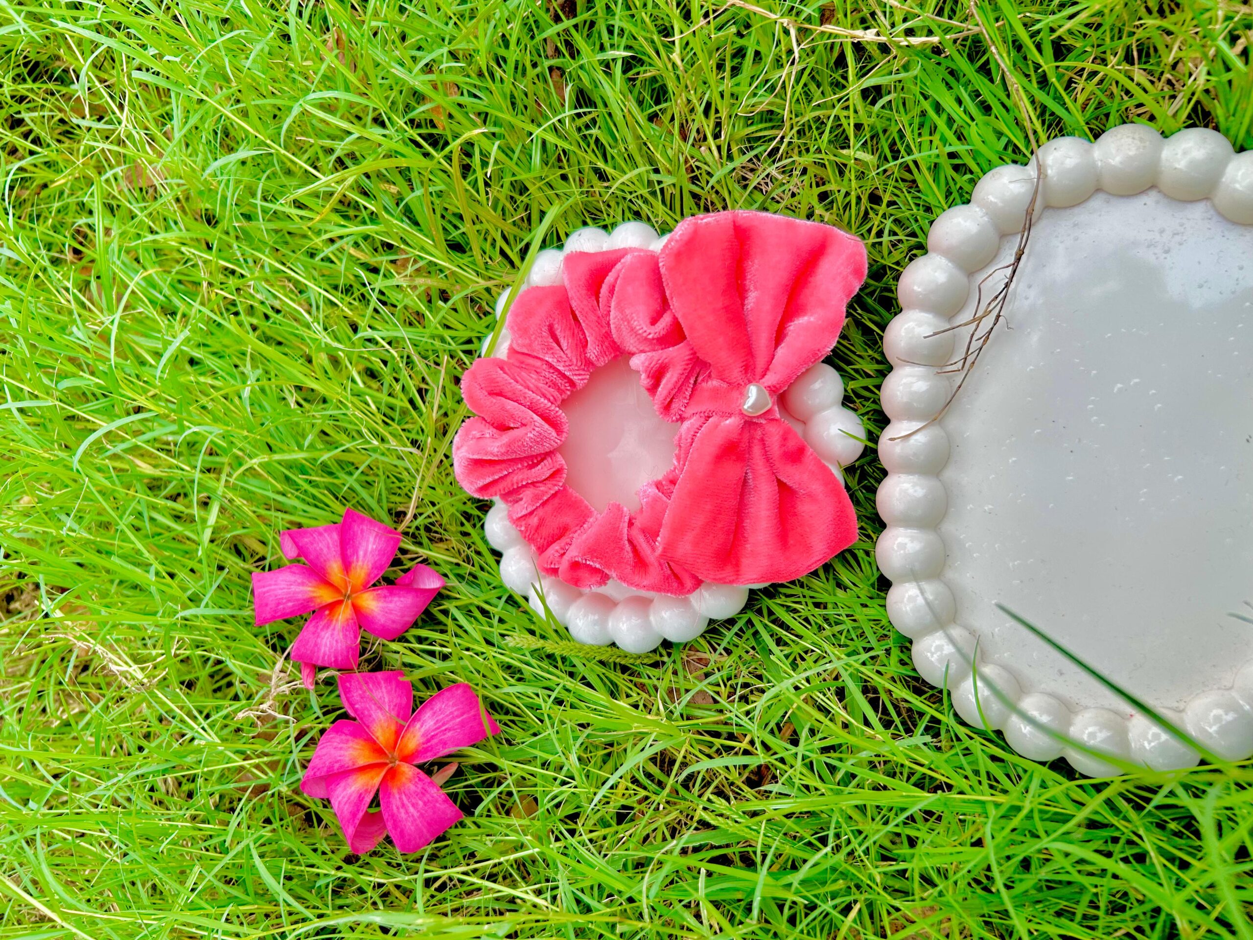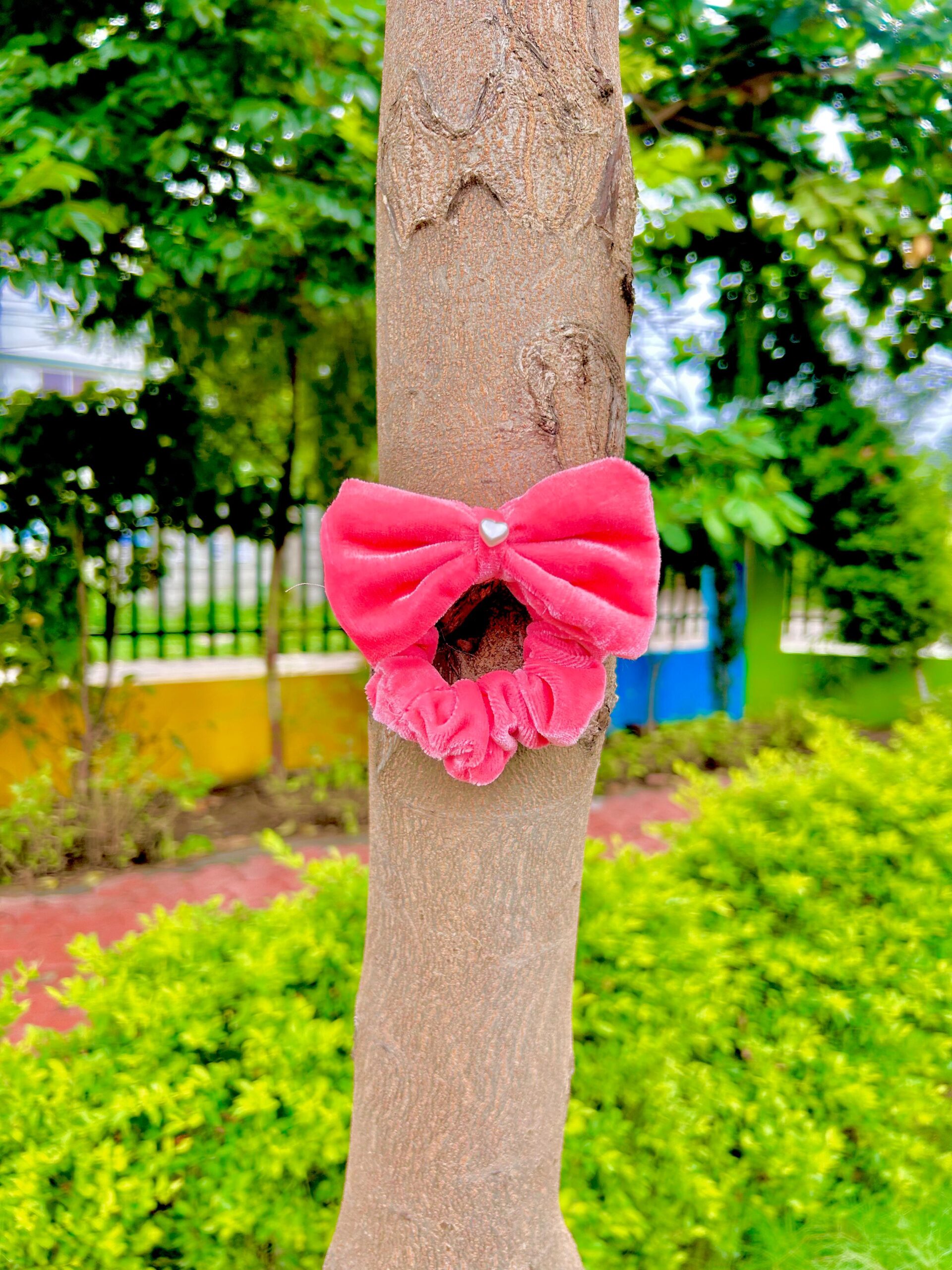 Handmade Pink Bow style Hair Scrunchies , Hair Ties, Rubber Band For Womens And Girls