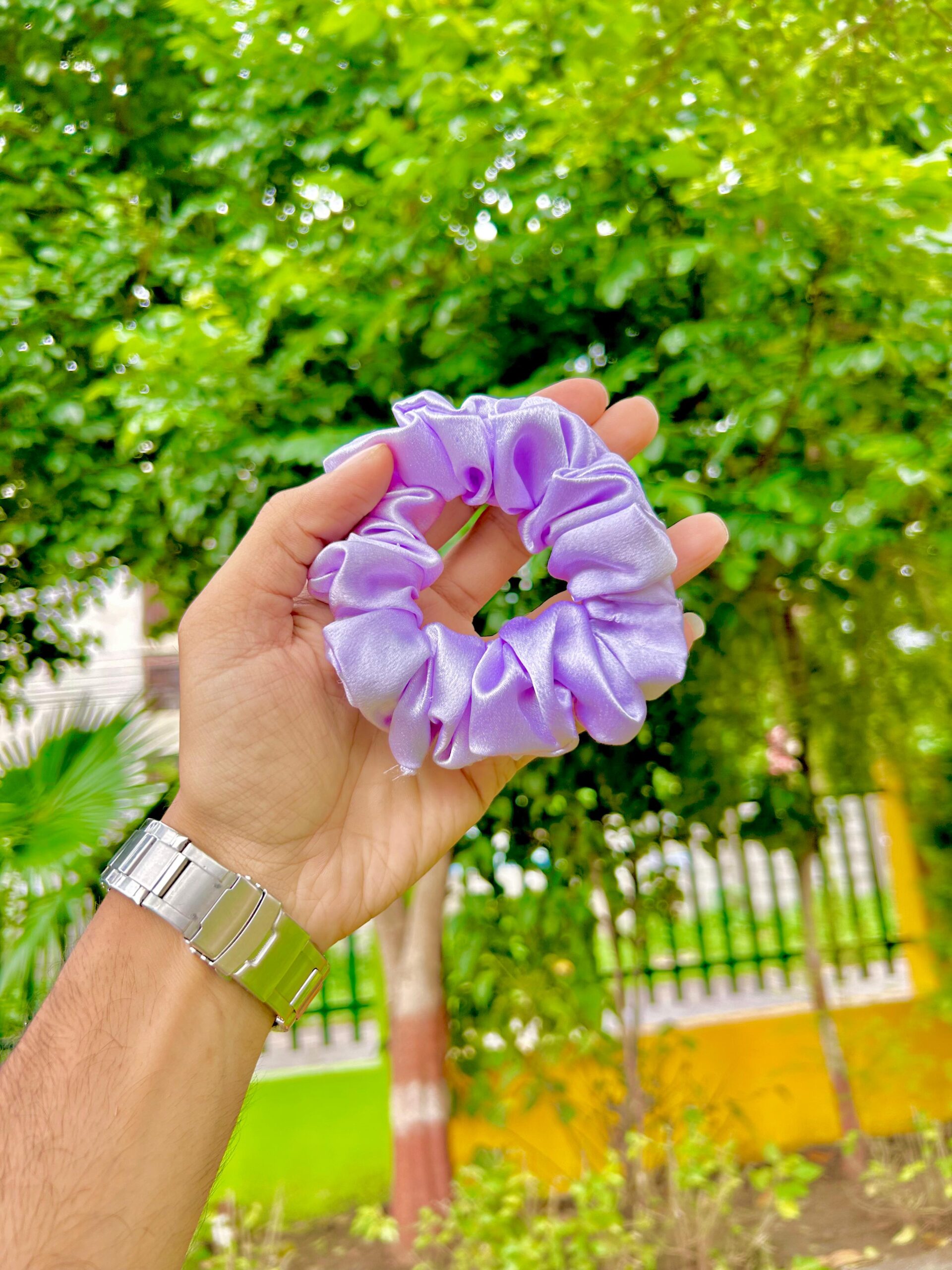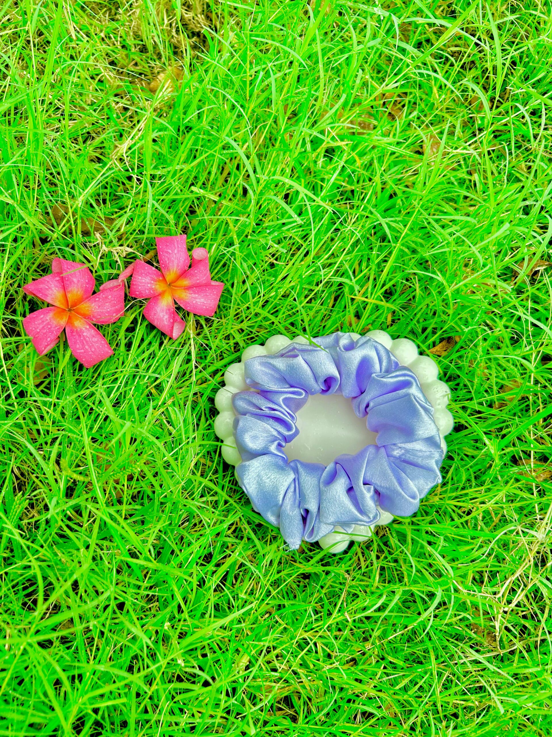Handmade Purple Satin Fabcric Hair Scrunchies , Hair Ties, Rubber Band For Womens And Girls