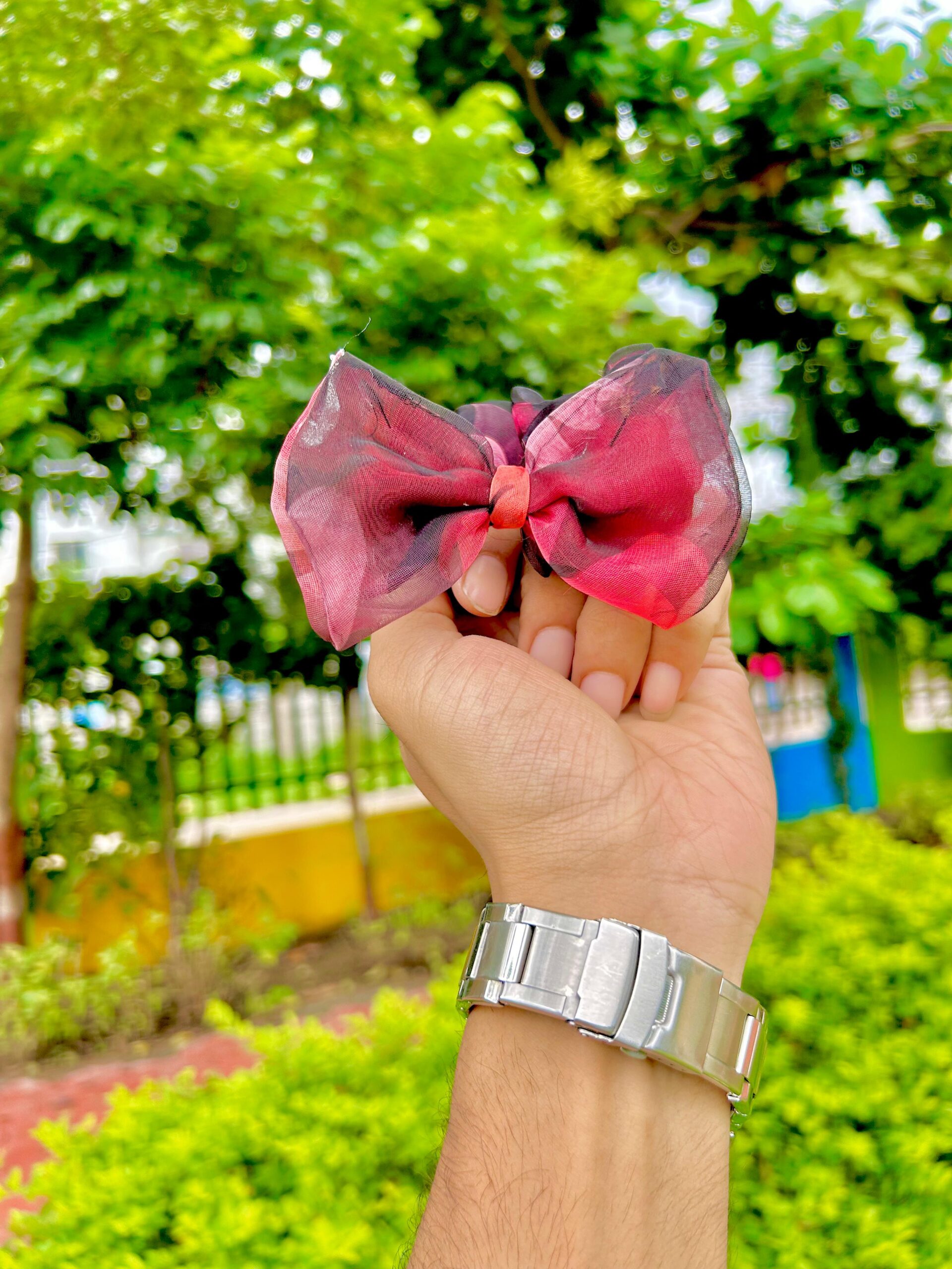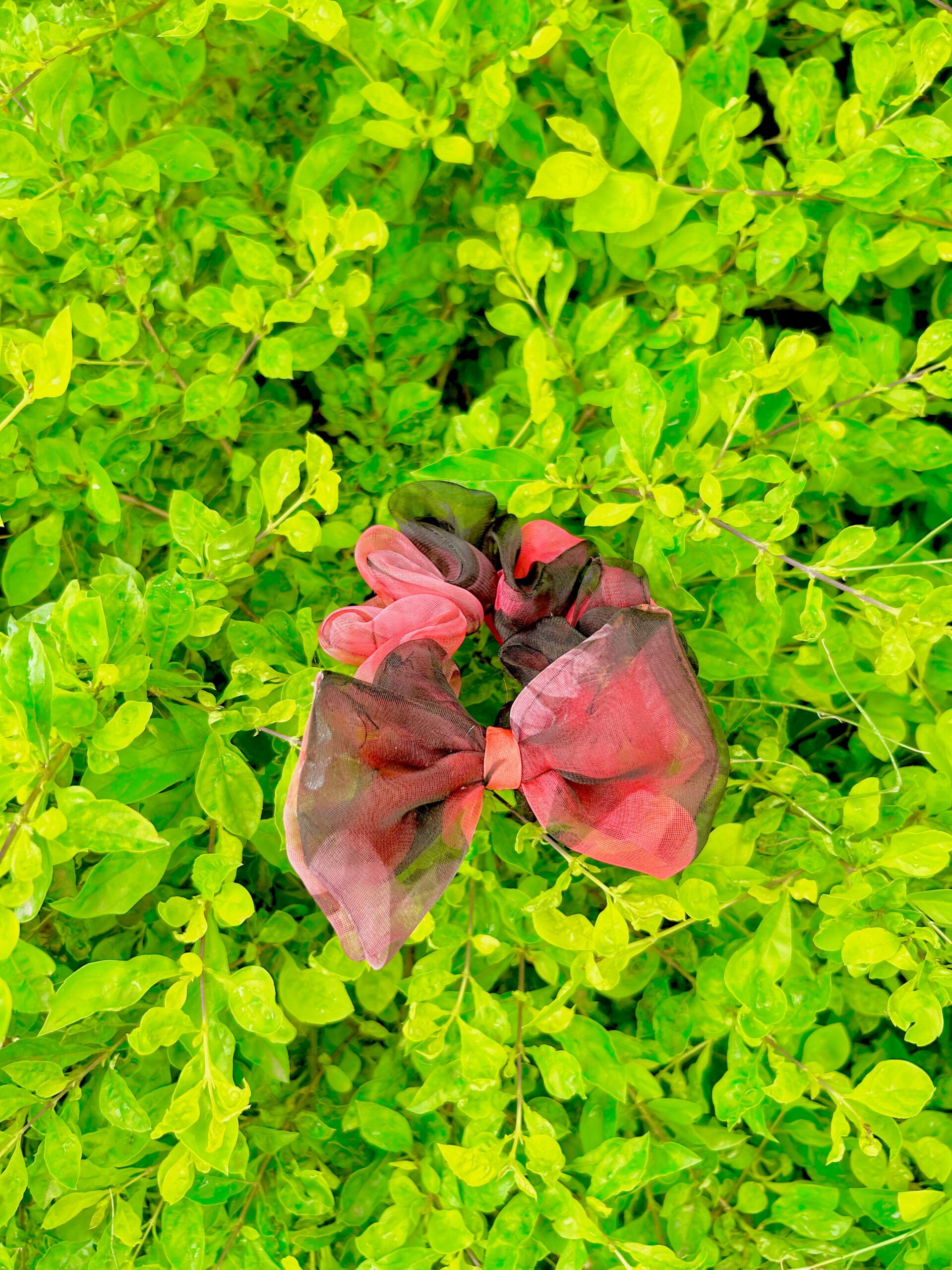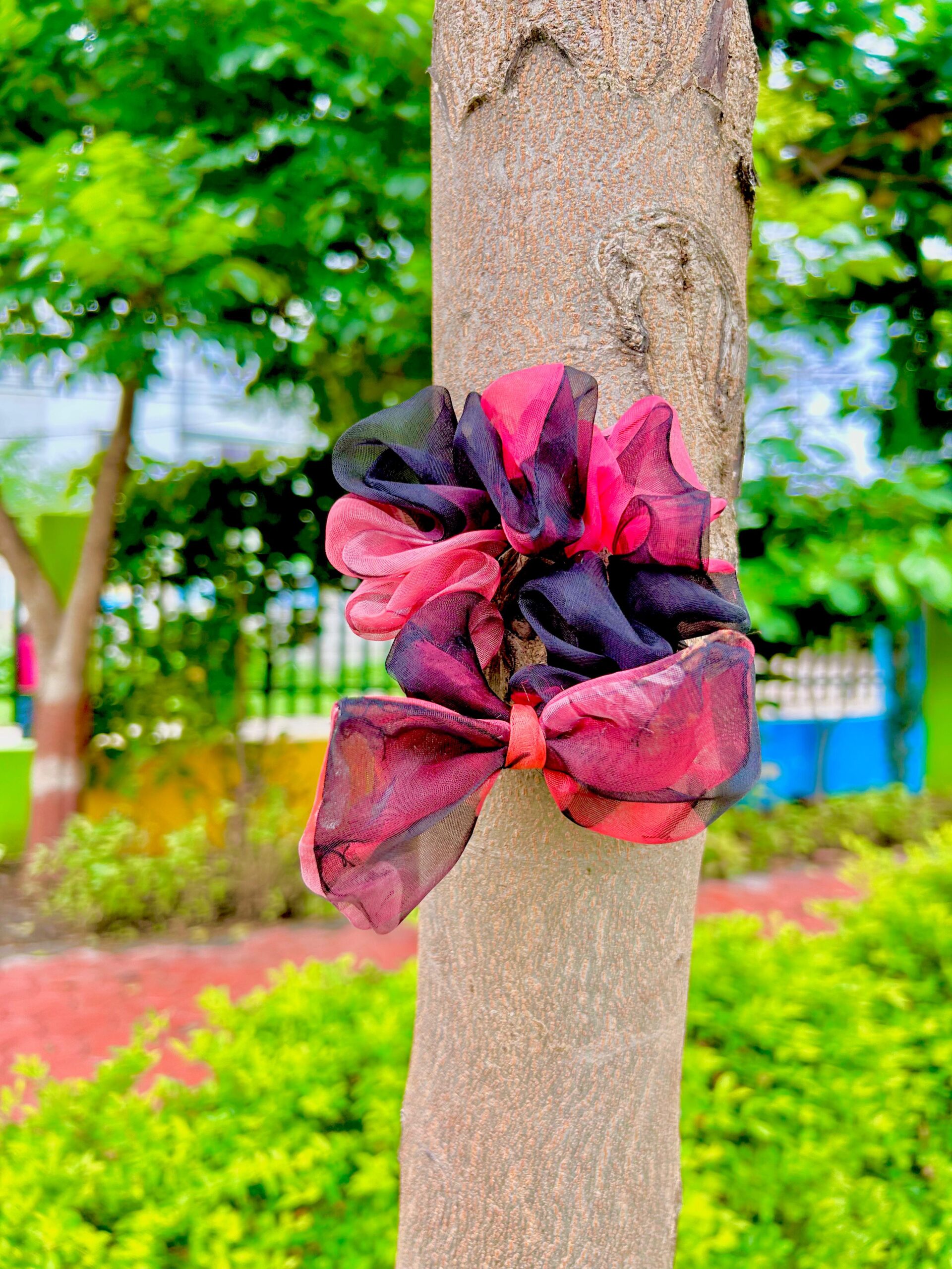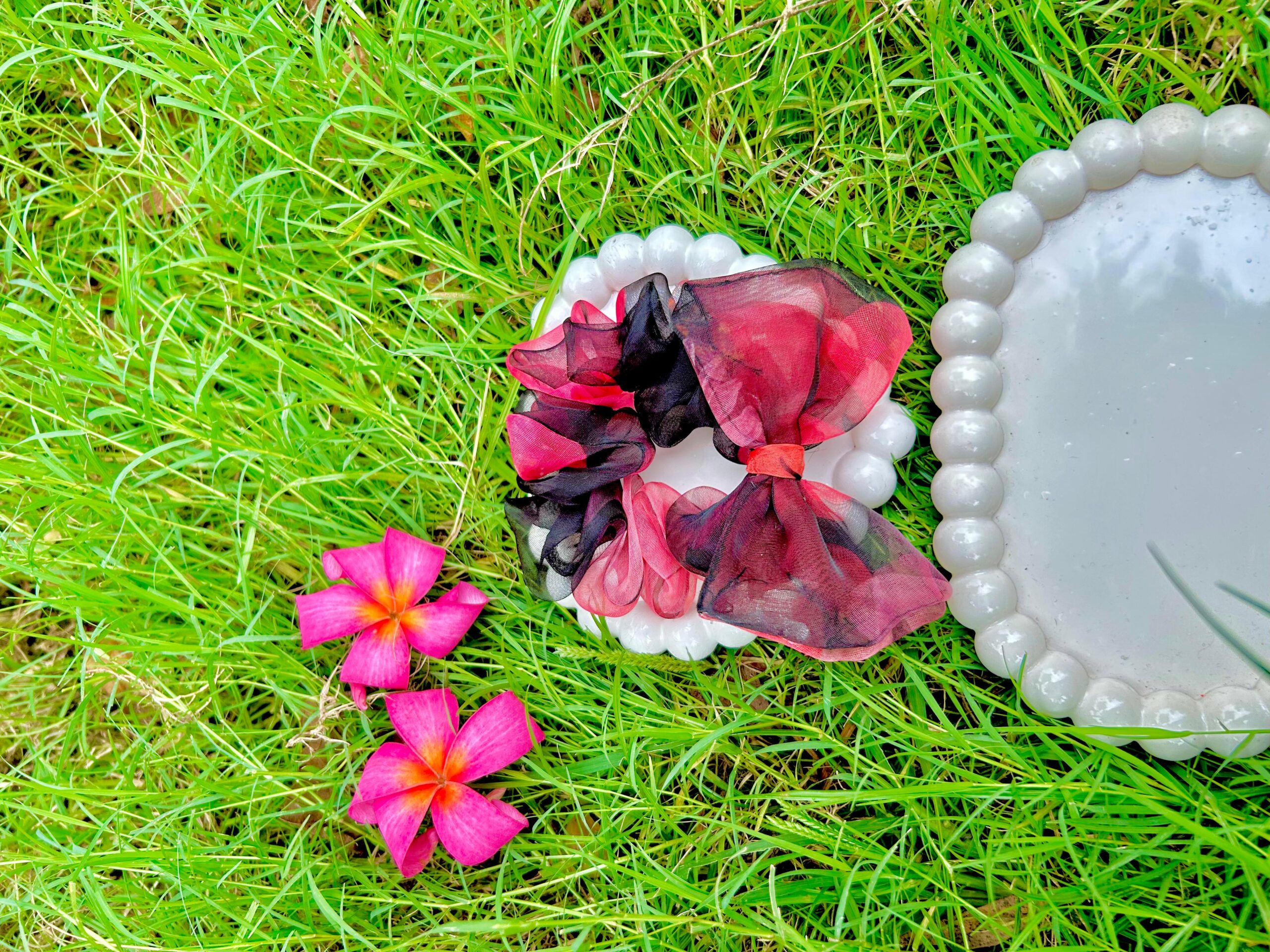 Handmade Red Black Mix Net Fabcric Hair Scrunchies , Hair Ties, Rubber Band For Womens And Girls