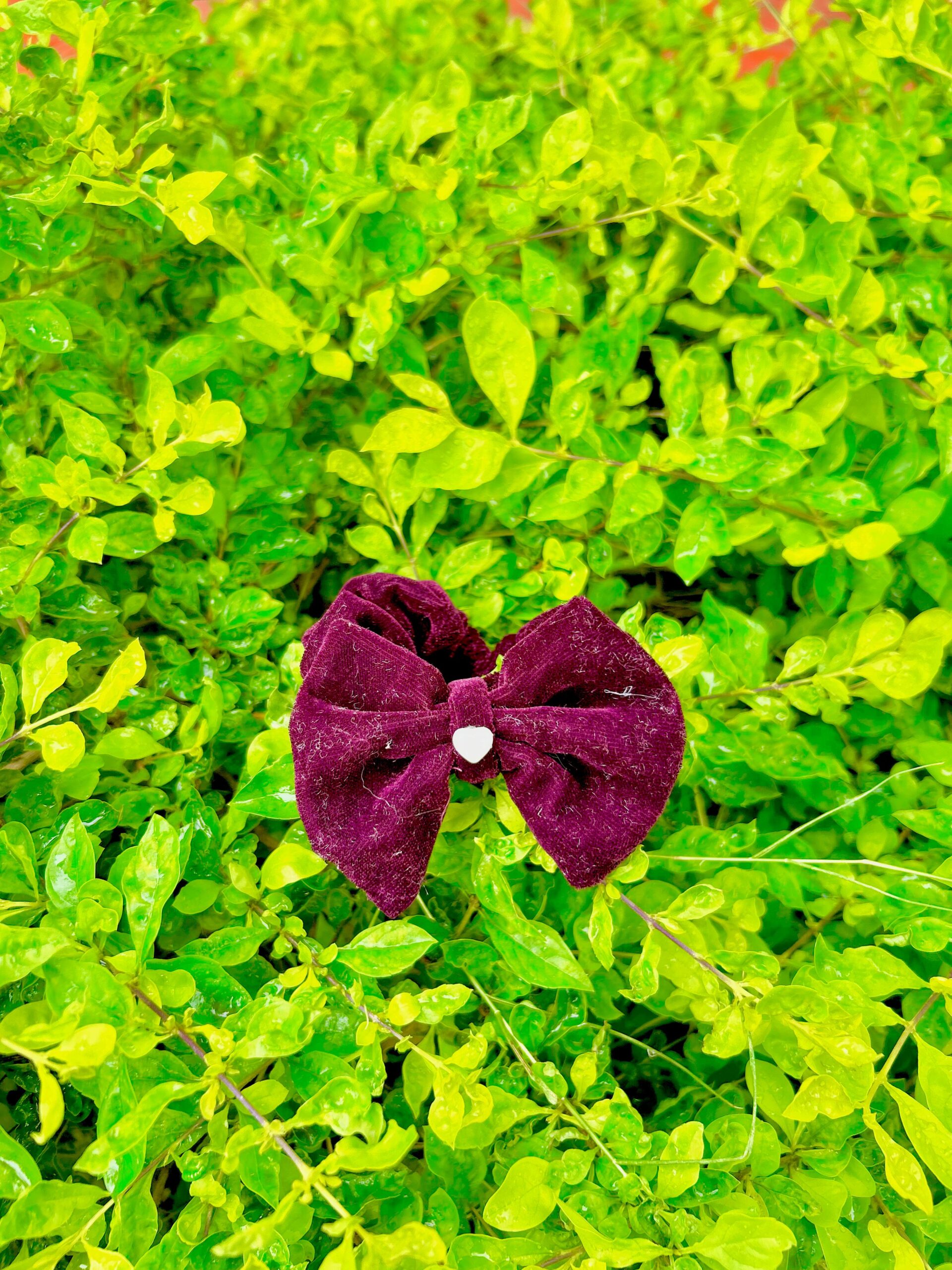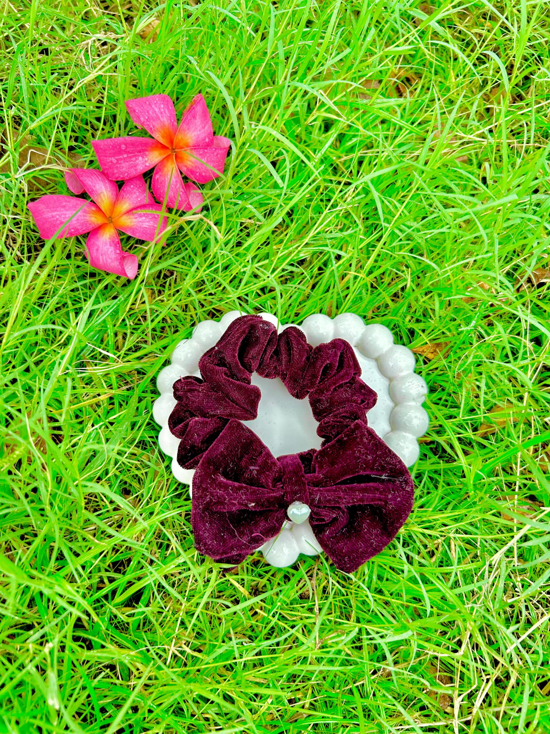 Handmade Wine Colour Bow Style Scrunchie, Hair Ties, Rubber Band For Womens And Girls