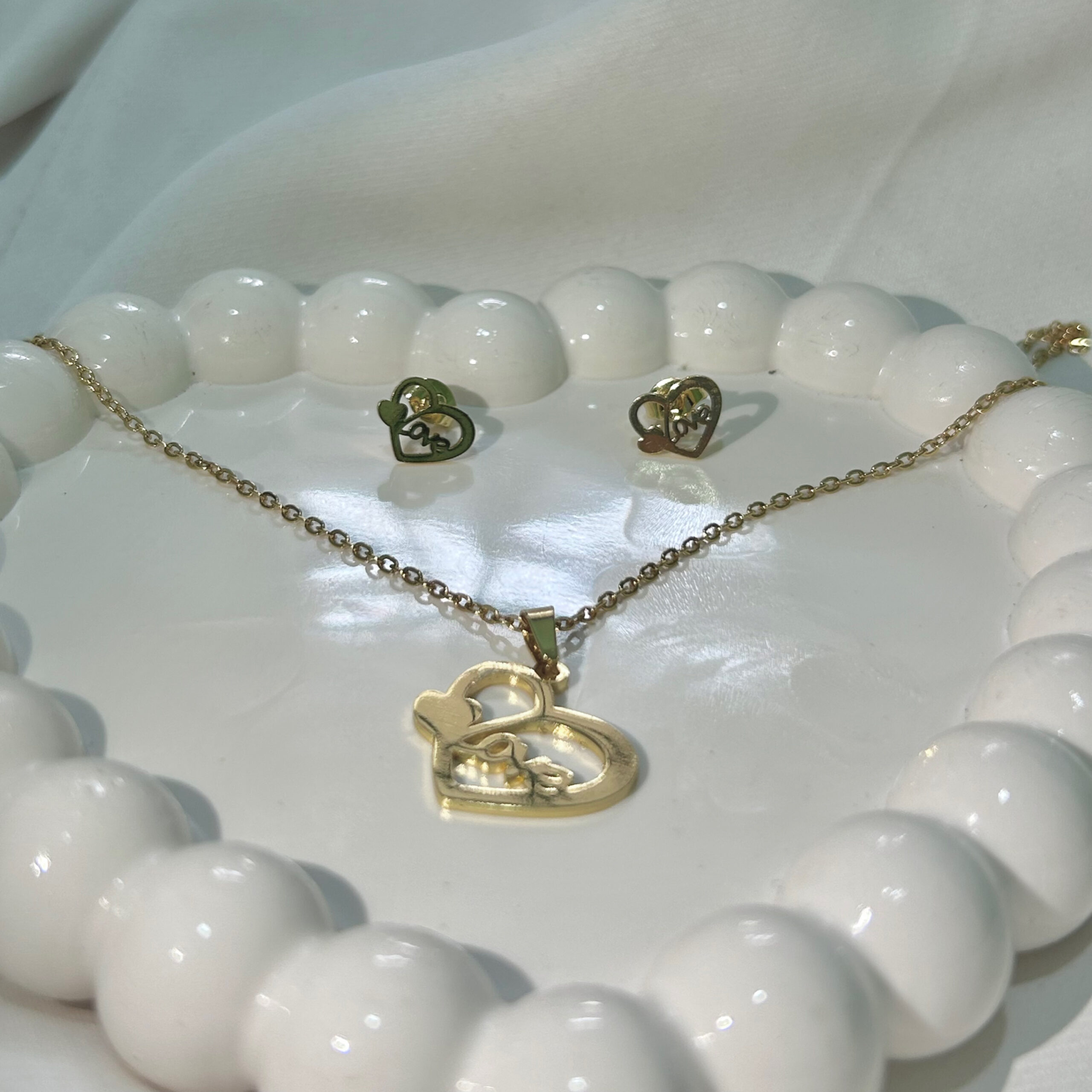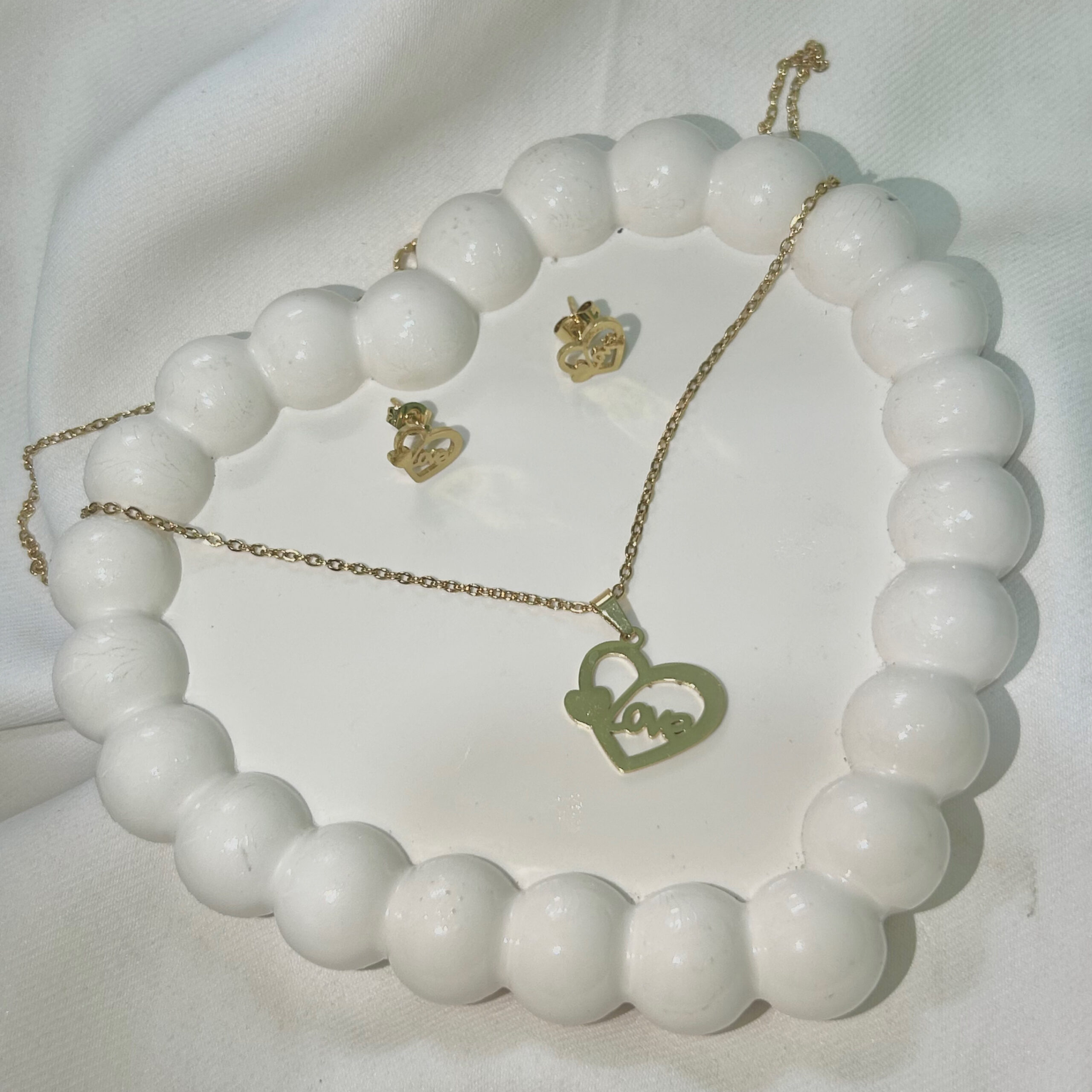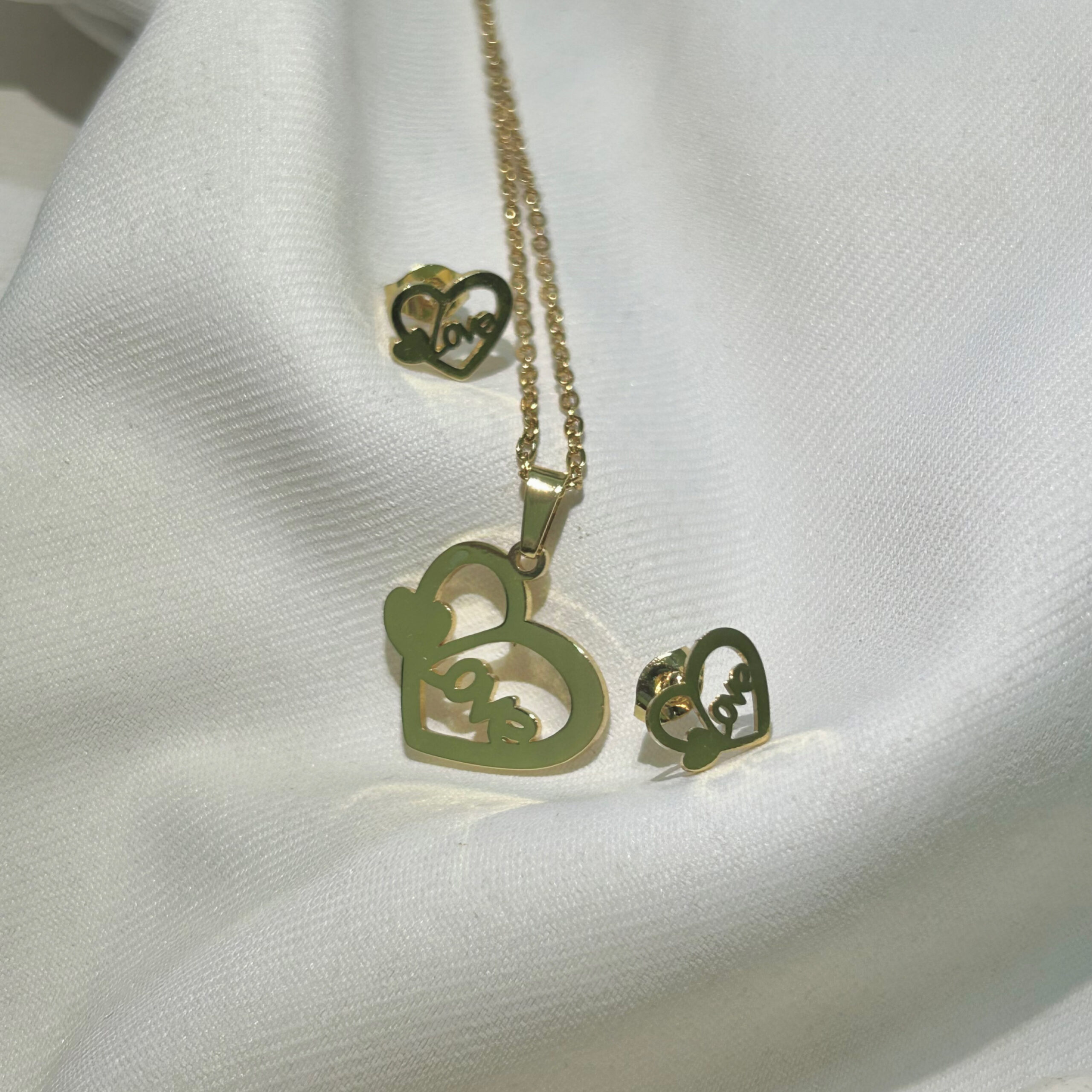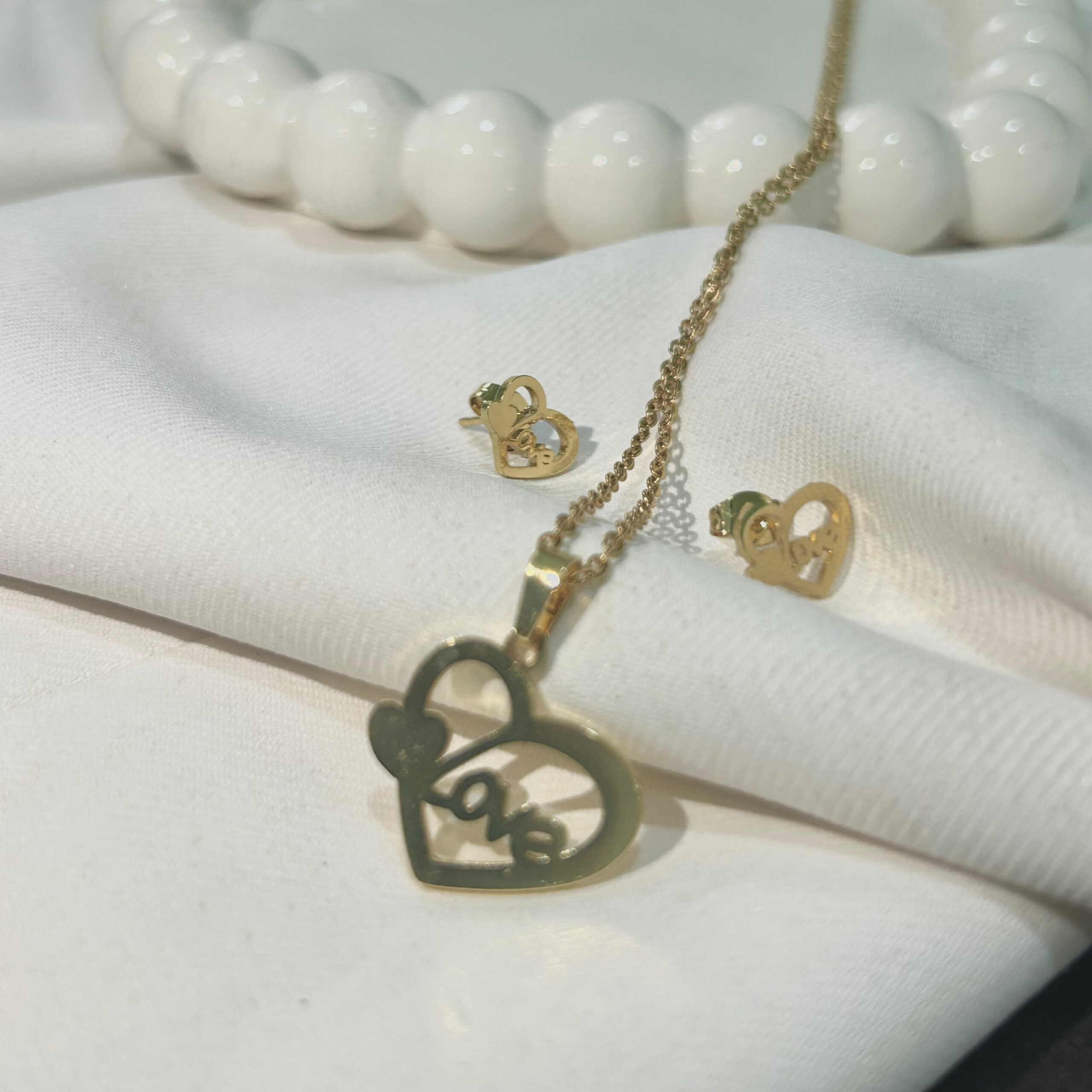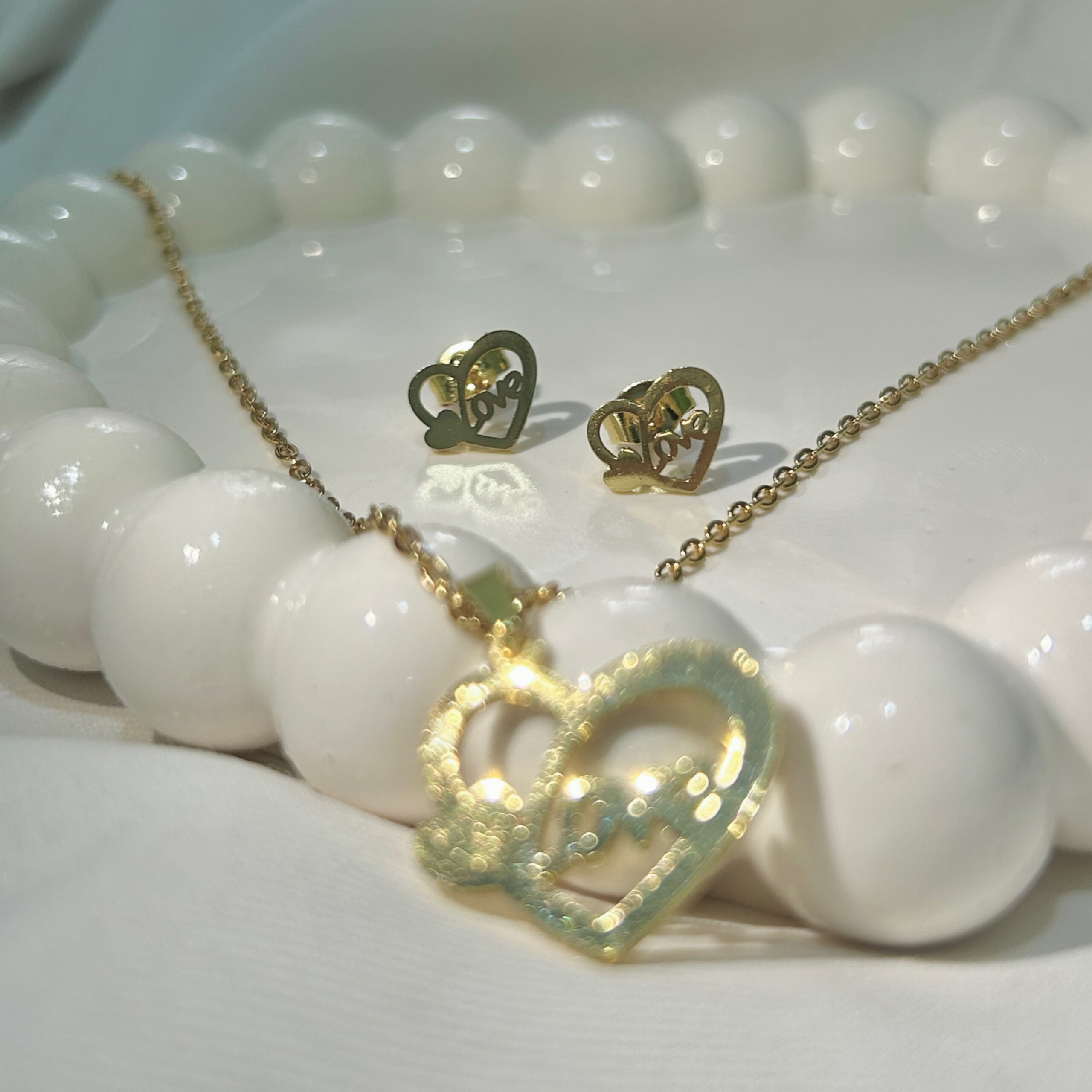 Heart Love Text Shape anti tarnish jewelry Pendant With Earrings For Girls and Women