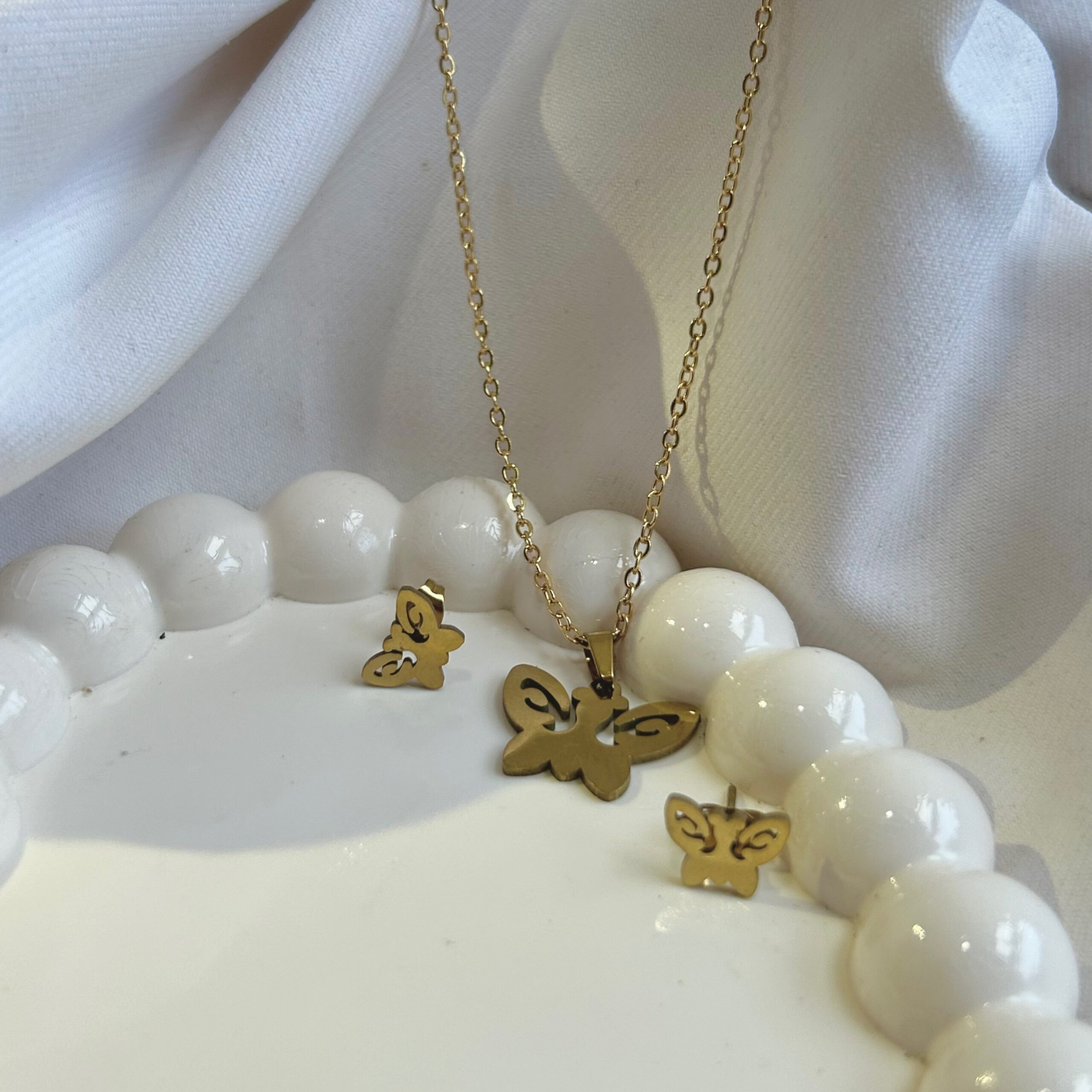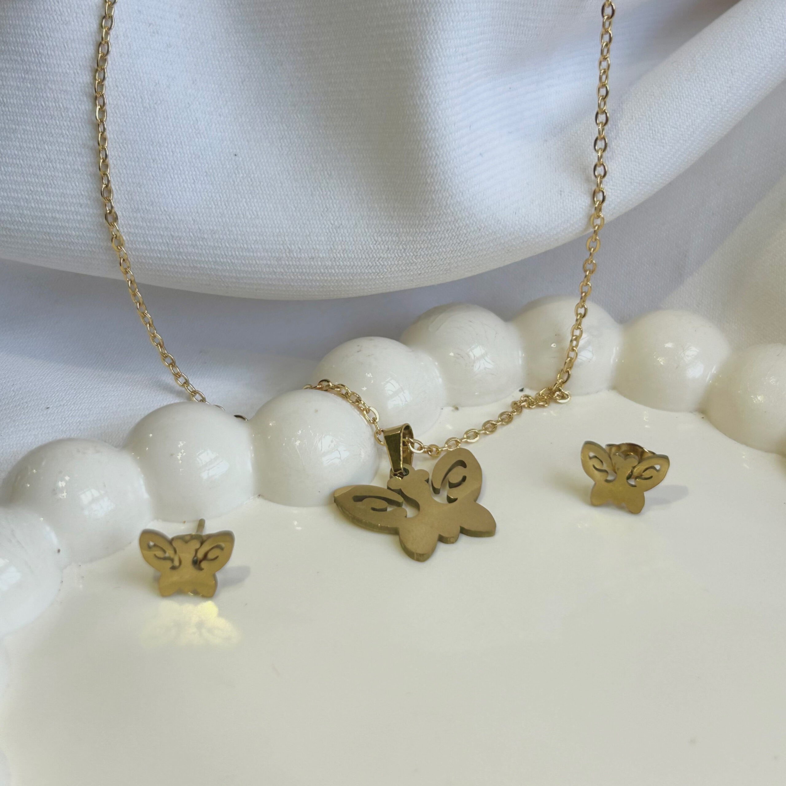New style Buttlerfly Shape anti tarnish jewelry Pendant With Earrings For Girls and Women