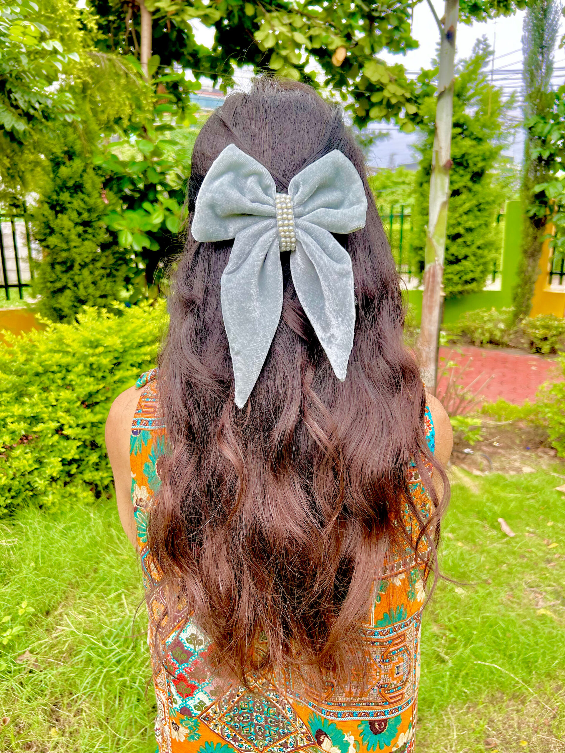 Pearl Grey Color Velvet fabric Colure Latest Korean Style Big Bow Hair Clips Ornament Hairpin Headdress Hair Accessories French Clips Big Hair Bows