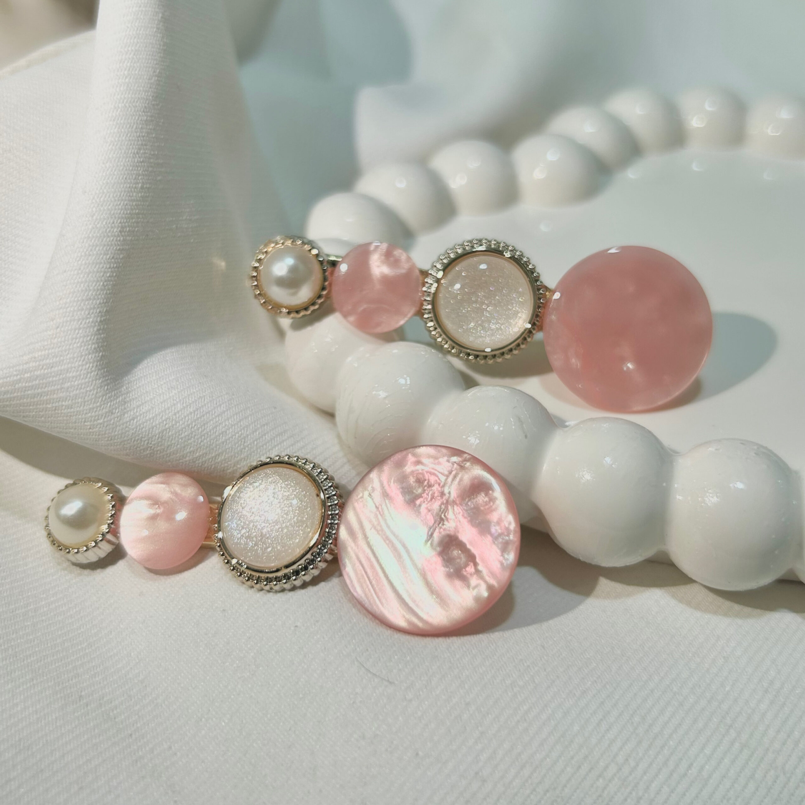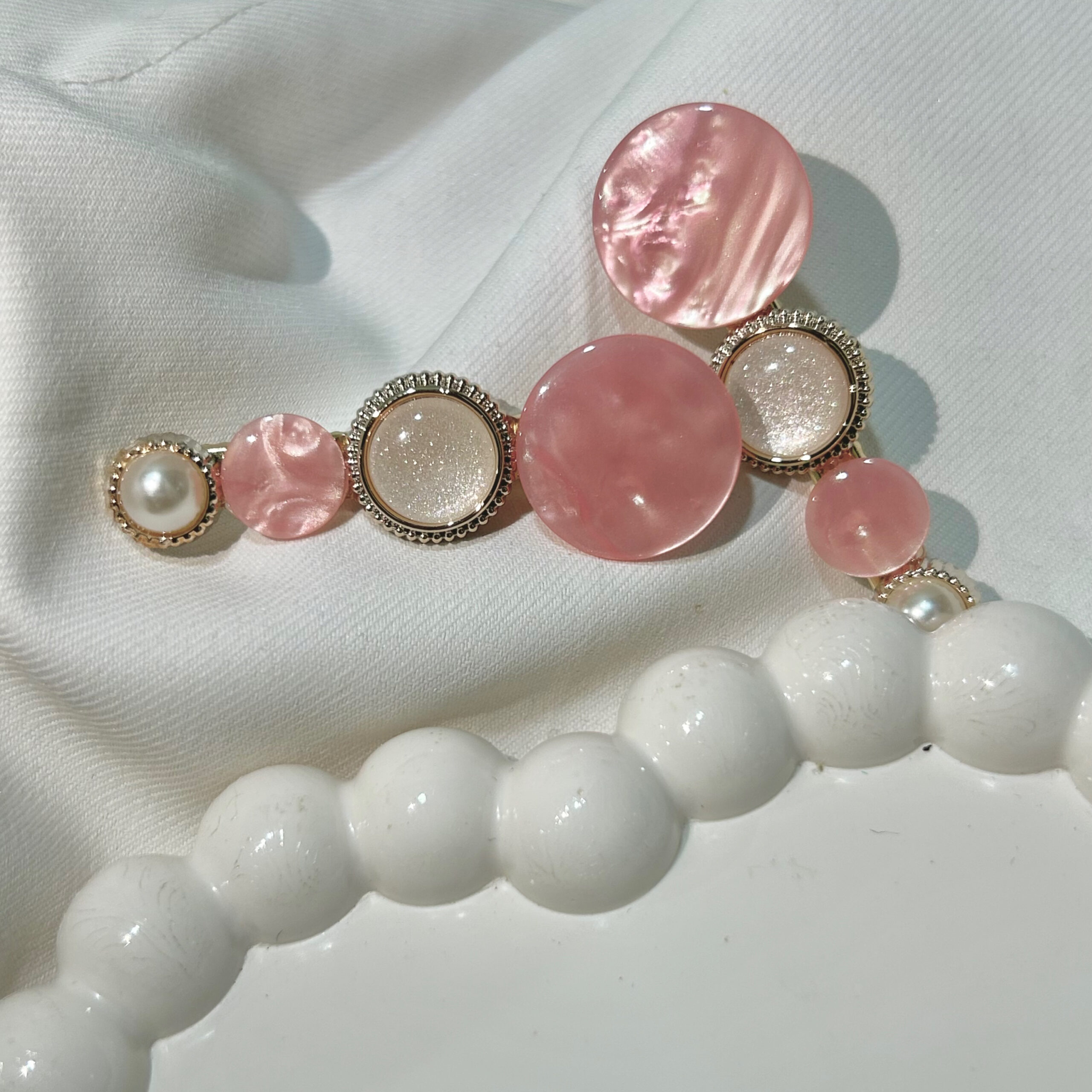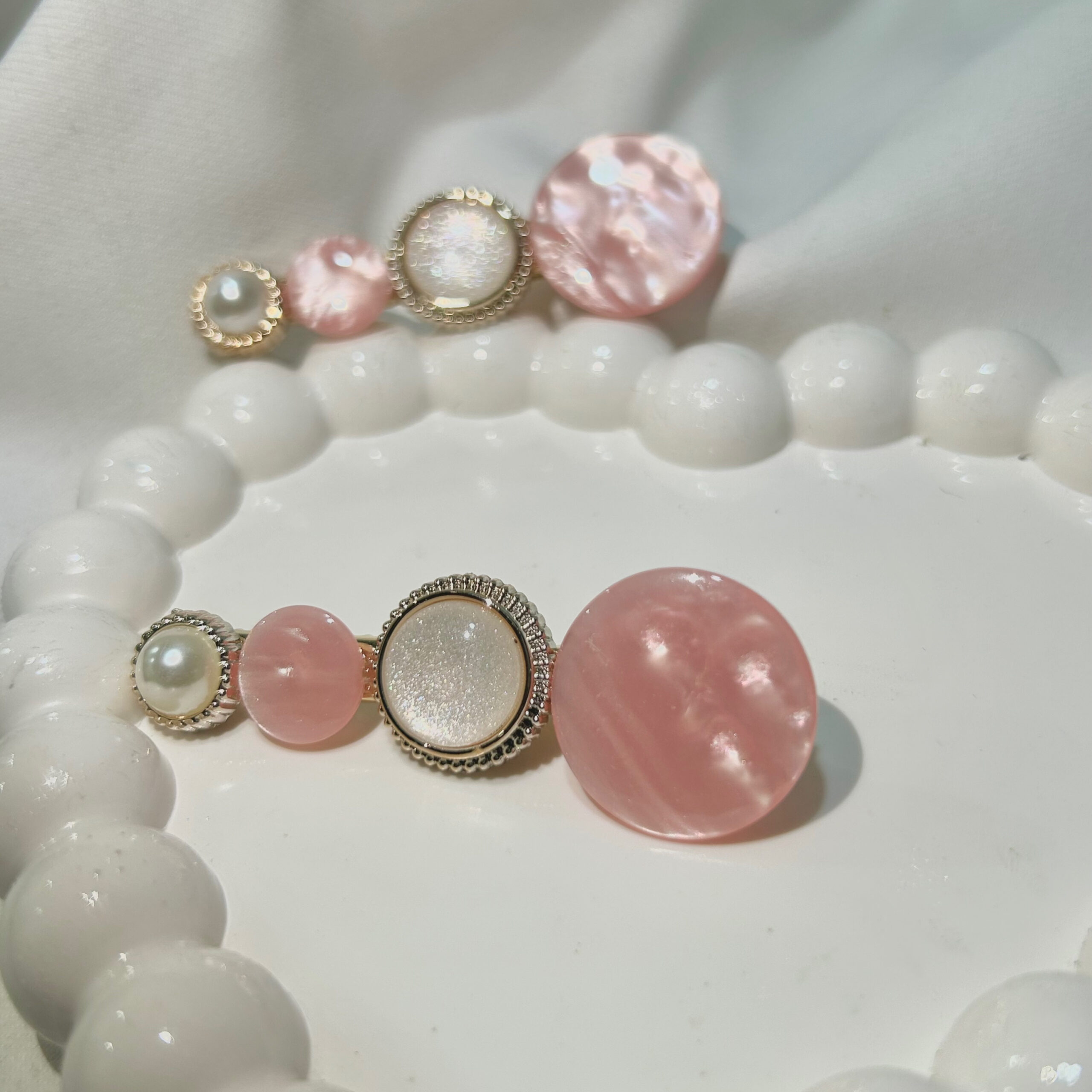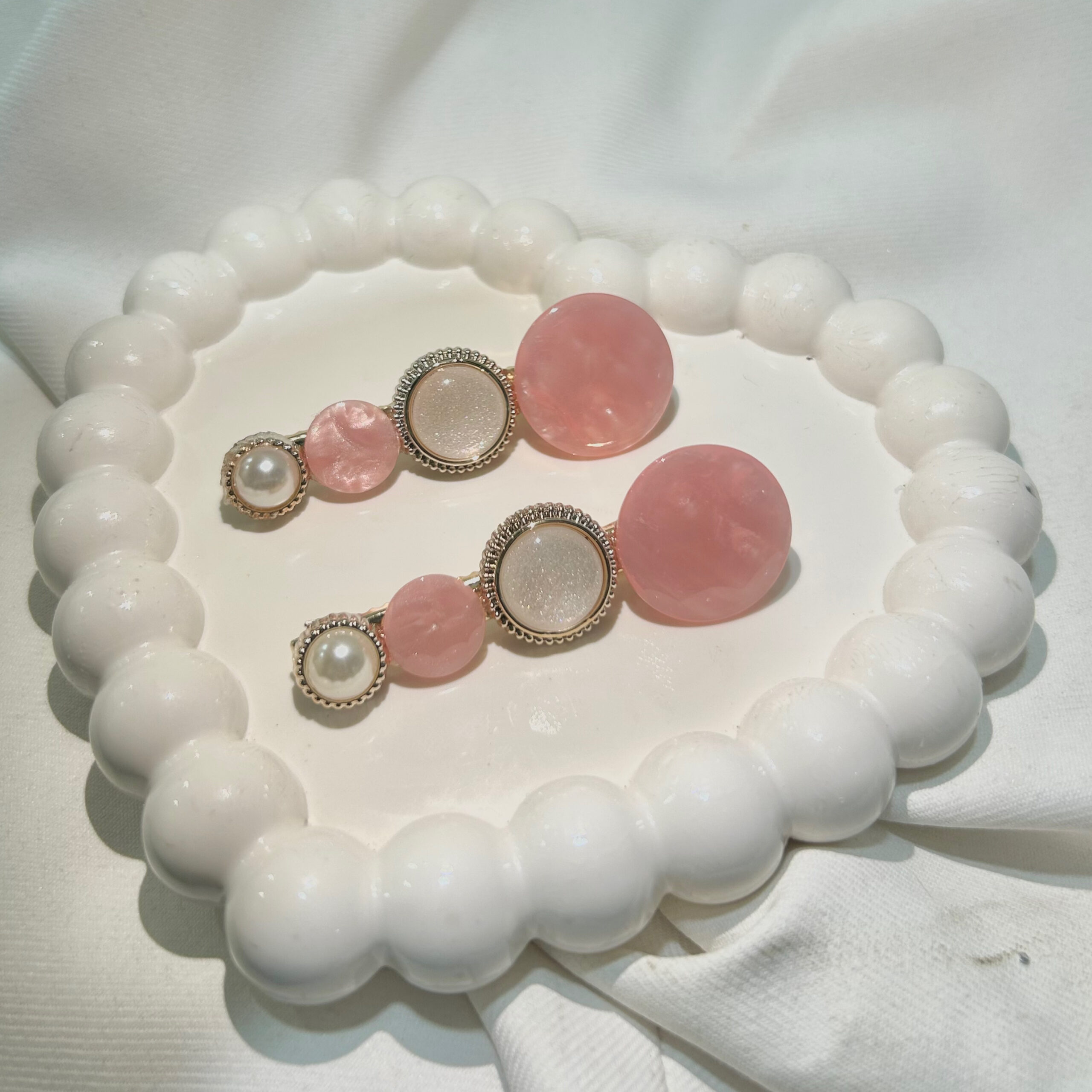 Rose Gold Round Flower Hair Clips Set with Pink Flowers, Elegant Korean Style Hair Accessories for Women, Gold-Tone