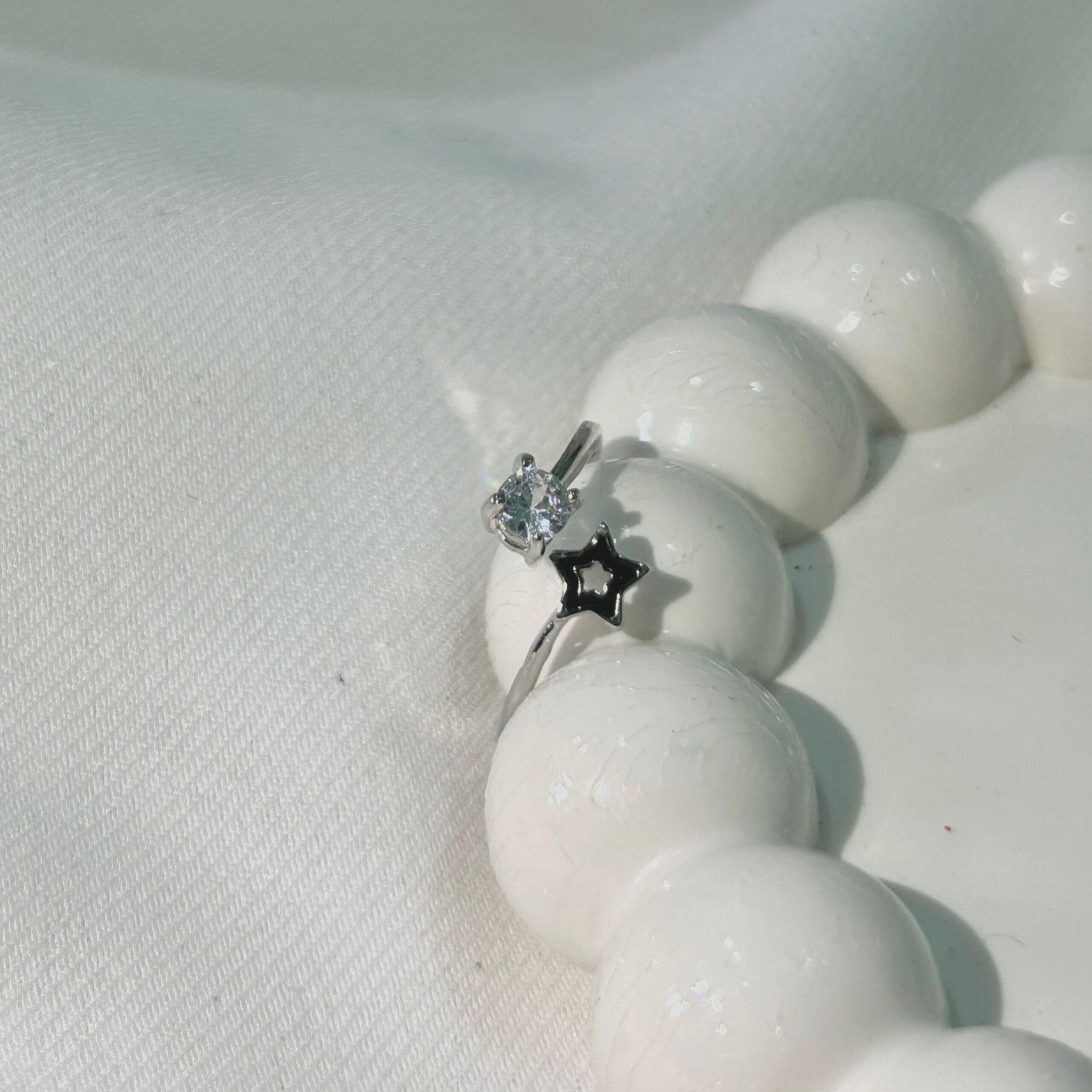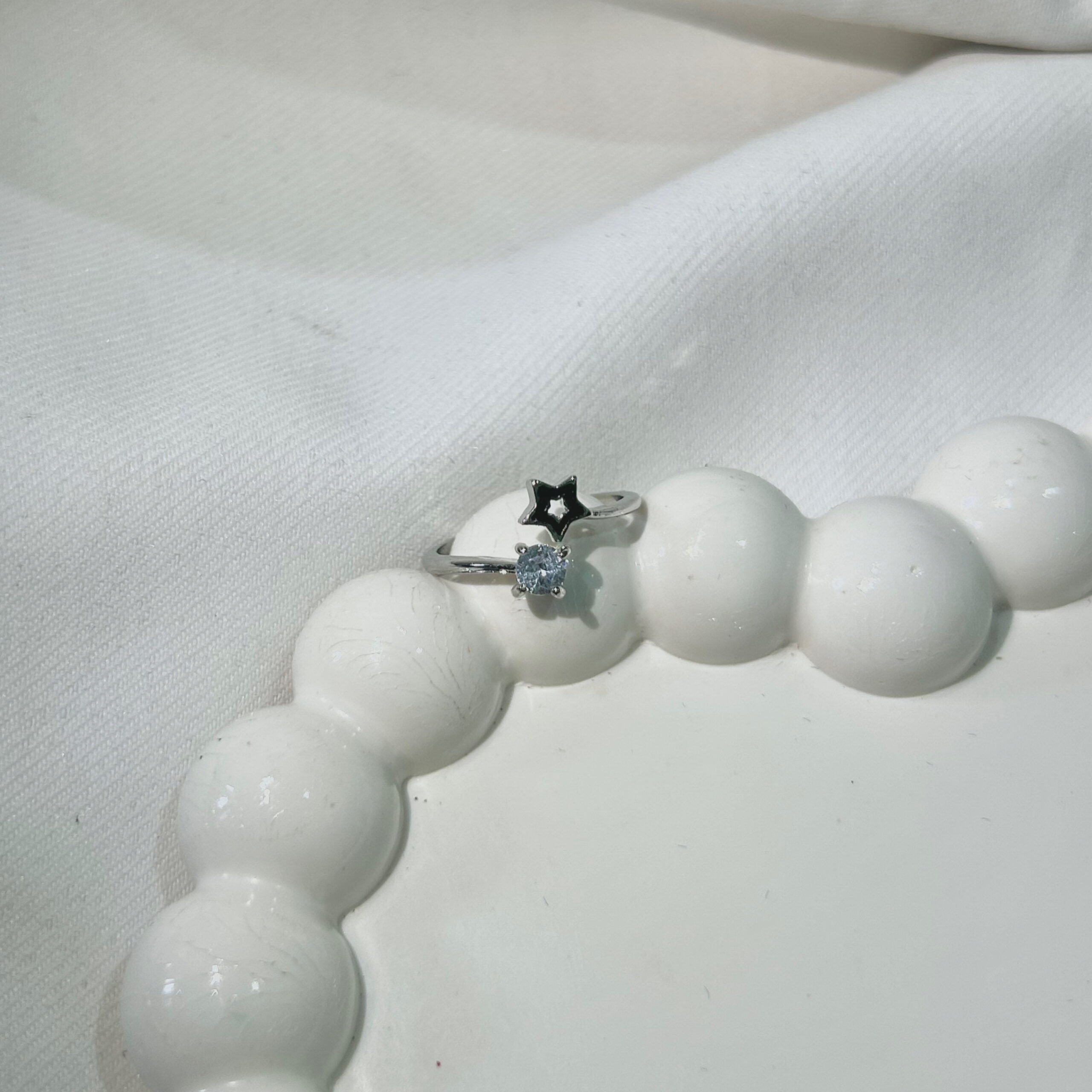 Star stunning silver-plated floral design and studded shimmering white diamond Adjustable finger ring for women and girls.