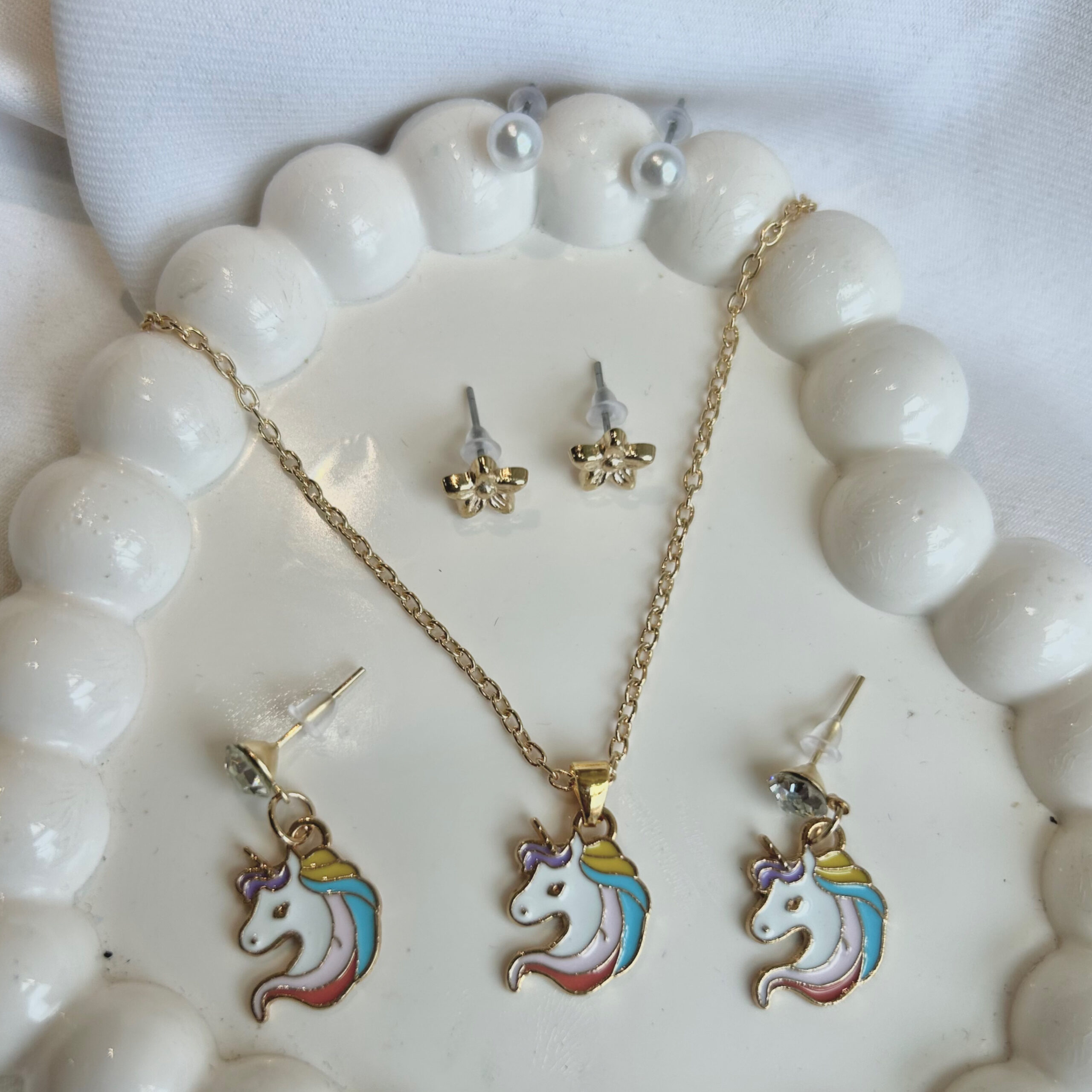 Unicorn Shape Necklace Pendant with Dangler Earrings for Women Alfa Jewels