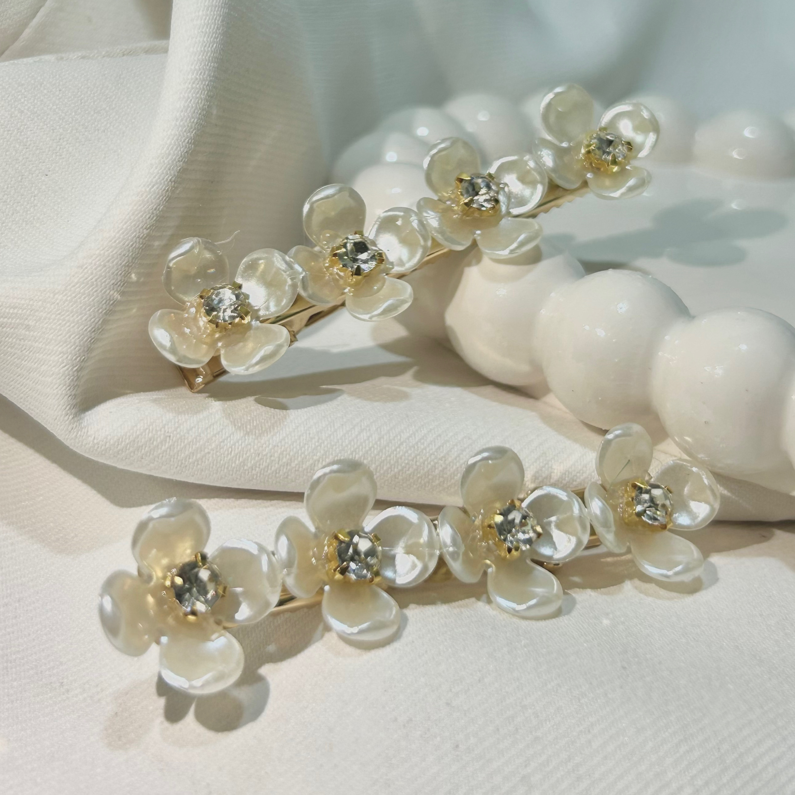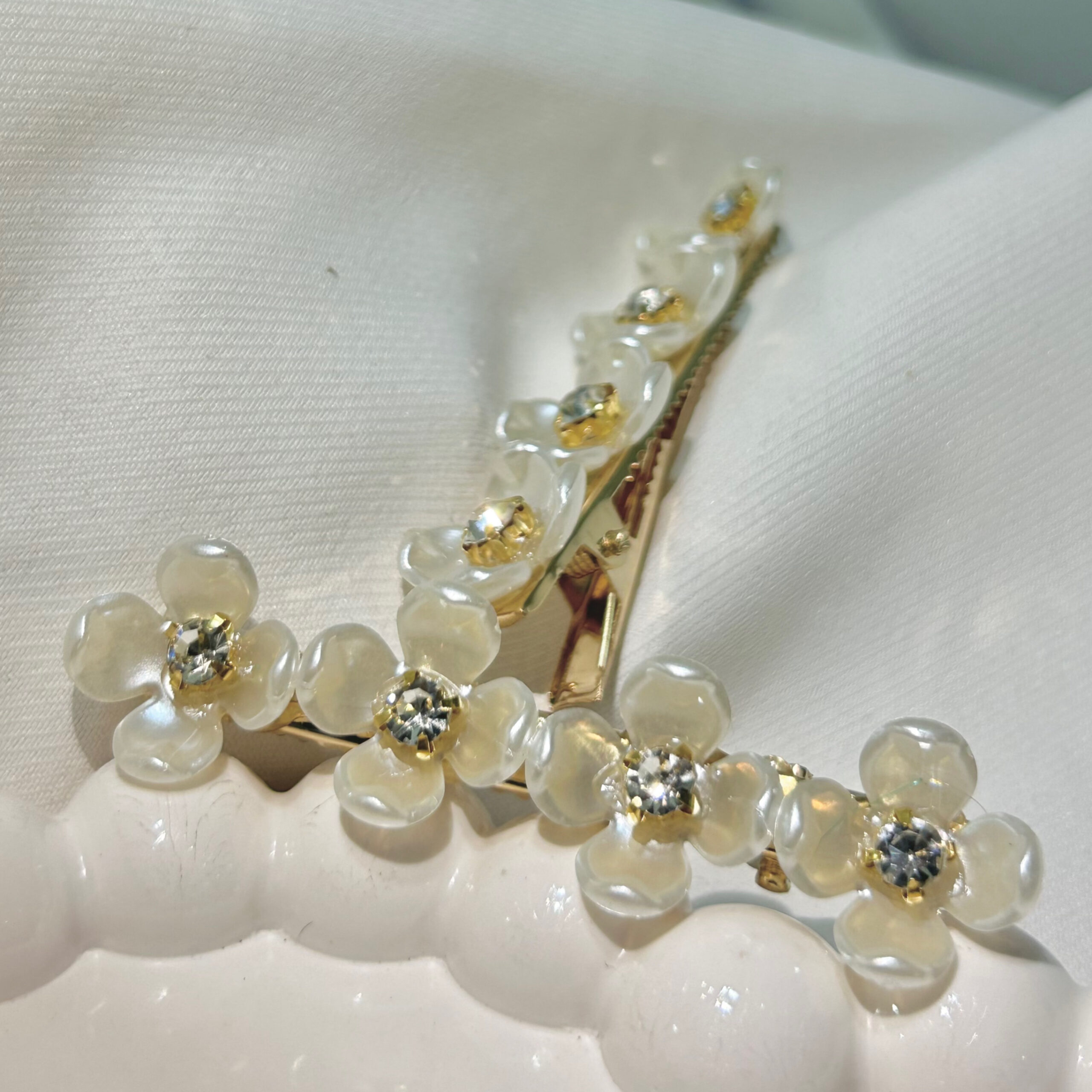 White Flower Hair Clips Set with Golden Flowers, Elegant Korean Style Hair Accessories for Women, Gold-Tone